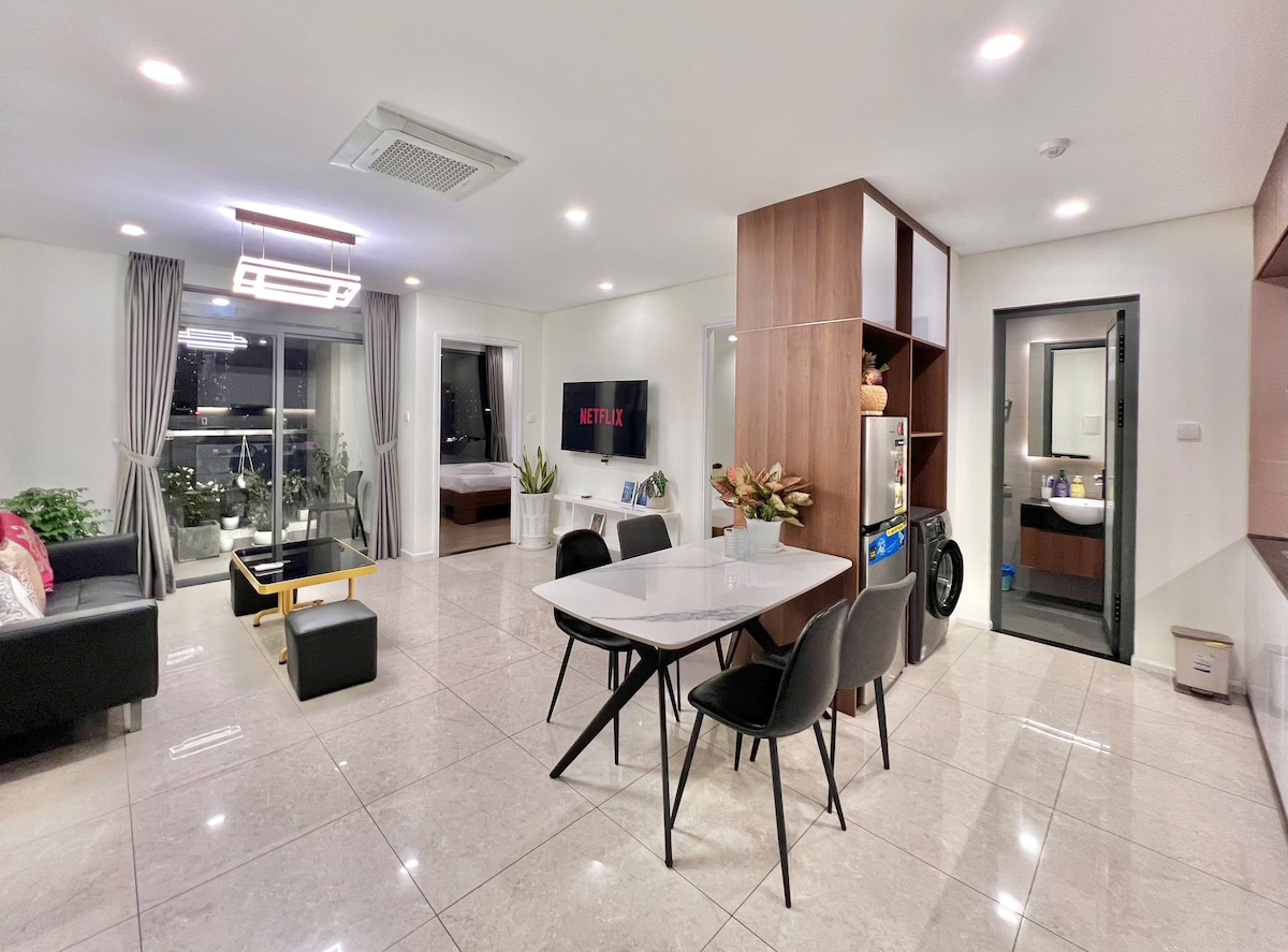 Modern 2 bedrooms apartment with amazing river view for either individuals, families or groups. Within 50 meters, you can easily walk to Lotte Cinema in TNL Plaza, Starbucks, Supermarket, etc. We offer great service with everything you need for your trip such as: - 5 minutes to District 1, 2,3,5,7,8. -2 bedrooms with 2 bathrooms. -Full-equipped kitchen. -3 Air-conditioners -Washing machine &refrigerator, rapid boil kettle. -Wifi and 43-inch TCL flat-screen TV. -Shampoo, towels, hair dryer, etc.