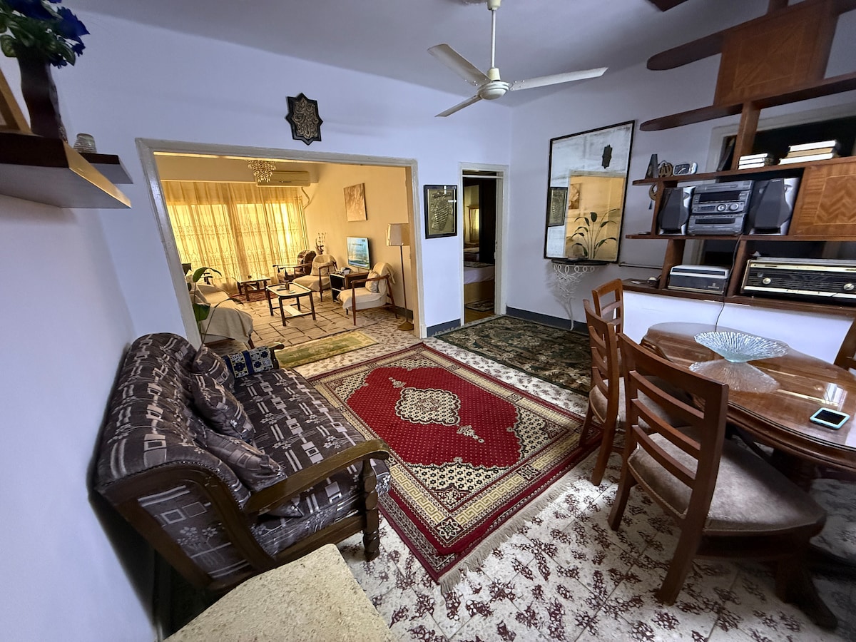 Una residencia única a solo 300 m a pie de la cornisa del Nilo, a 15 minutos a pie de la Torre de El Cairo. Un apartamento en el sexto piso con acceso exclusivo al ascensor para residentes. Todas las habitaciones tienen aire acondicionado y una cocina renovada bien equipada. Tendrás fácil acceso al puente del 6 de octubre, que conecta la mayor parte de El Cairo, y a 20 minutos a pie de la plaza Tahrir. Hay varios servicios en el contexto circundante donde hay restaurantes, cafeterías, panaderías y supermercados .