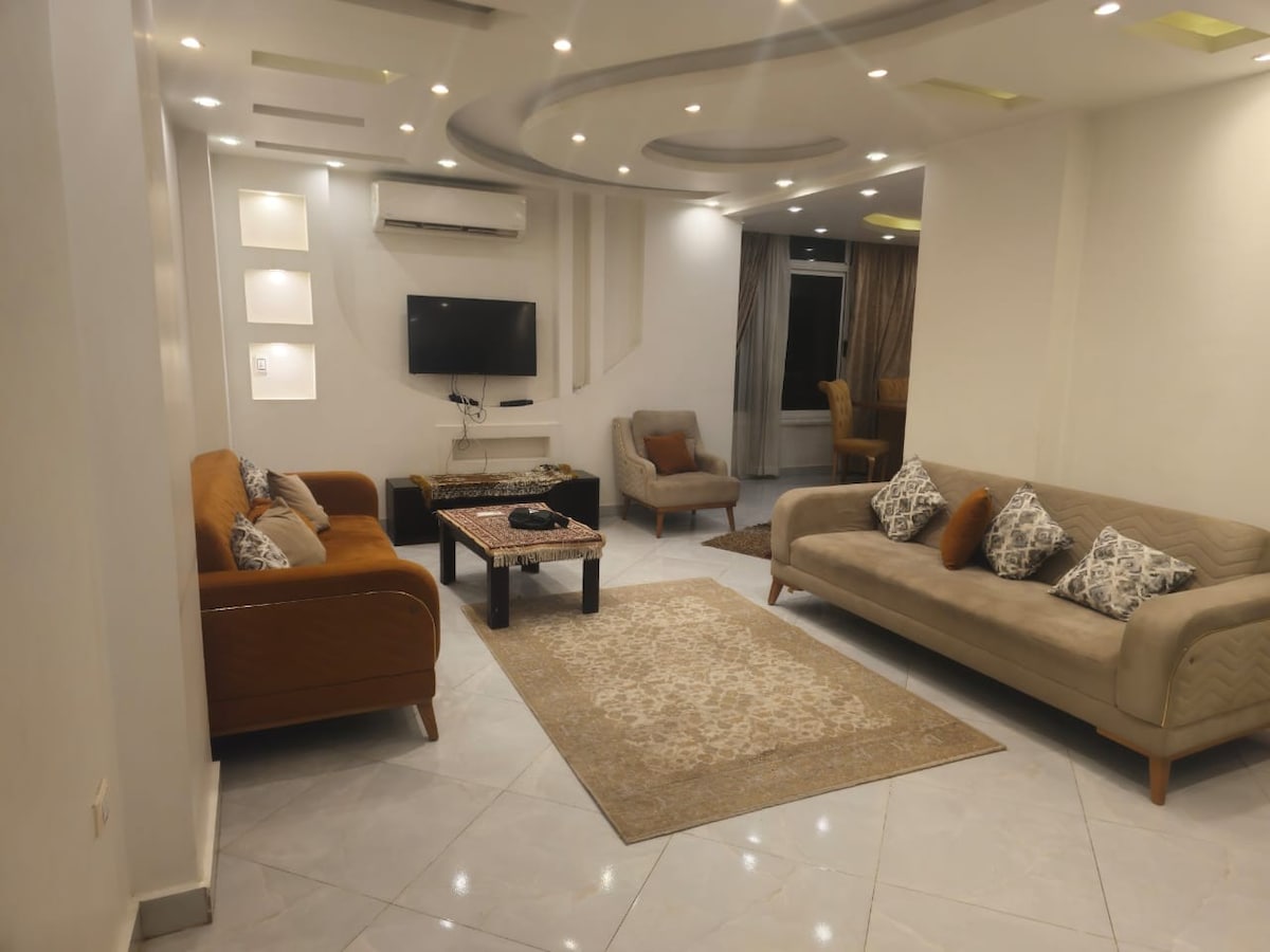 Tu familia estará cerca de todo cuando te hospedes en este espacio estratégico. � � � � � � � � � Apartamento de lujo con todos los detalles 5.ª 📍 planta 🛋️ Recepción de dos piezas 🛏️ 3 habitaciones completas 🚿 4 baños Cocina 🧑🍳totalmente equipada Mesa de comedor 🍽️ Acabado muy 🎨 lujoso Cerca de todos los servicios, el metro, el Nilo y el centro de la ciudad están a pocos minutos a pie