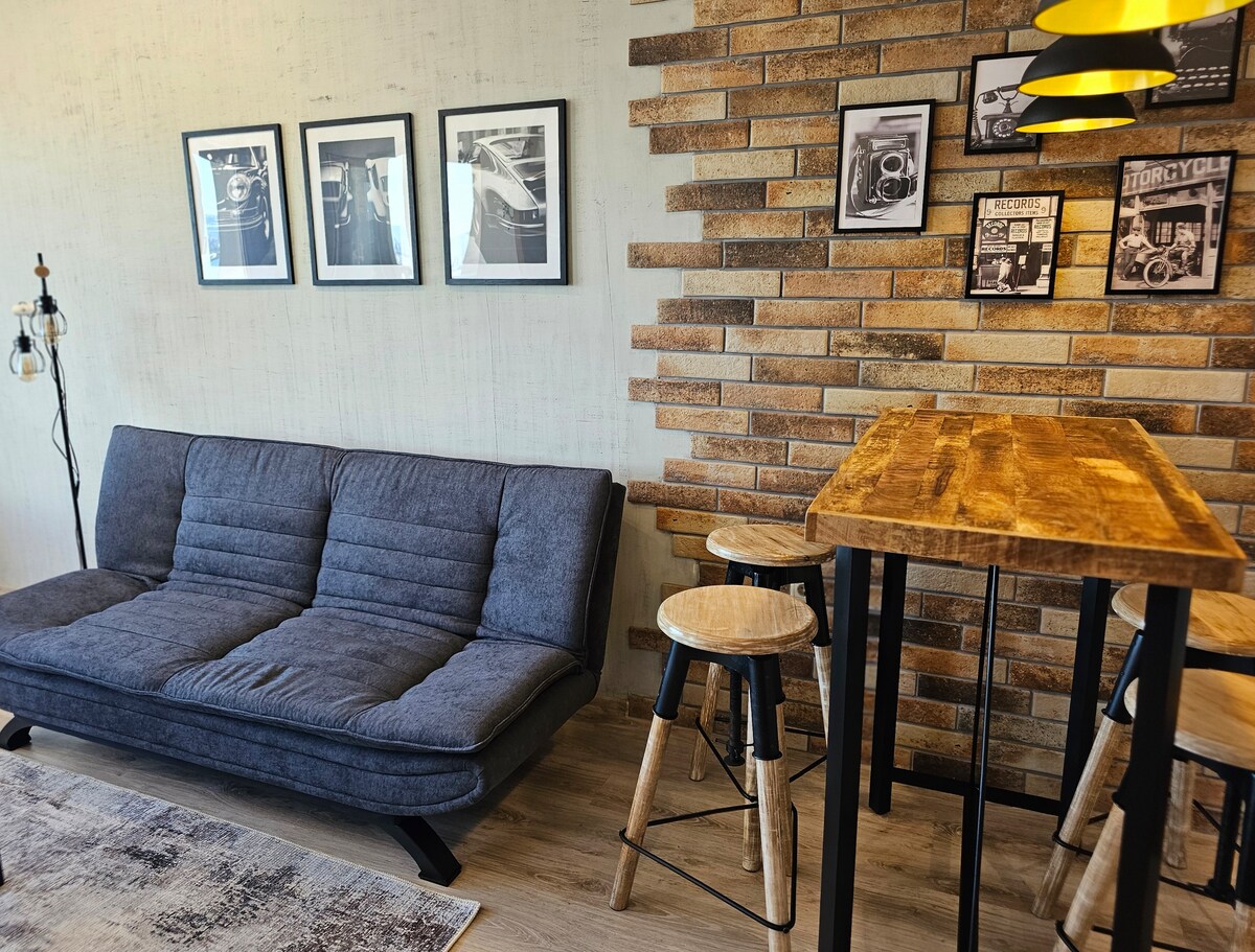 Disfruta de impresionantes vistas al mar desde este moderno apartamento industrial de 1 dormitorio en South Bay, Asparuhovo. Con una cama tamaño queen, sofá cama, aire acondicionado en ambas habitaciones, cocina completa (lavavajillas, microondas, estufa, horno, cafetera), lavadora, TV, Wi-Fi y un gran balcón con vistas a la piscina y los jardines. Playa justo al otro lado de la calle. Aparcamiento gratuito. Cafés, restaurantes y tiendas cerca. Se requiere identificación/pasaporte antes de la llegada para el registro turístico.