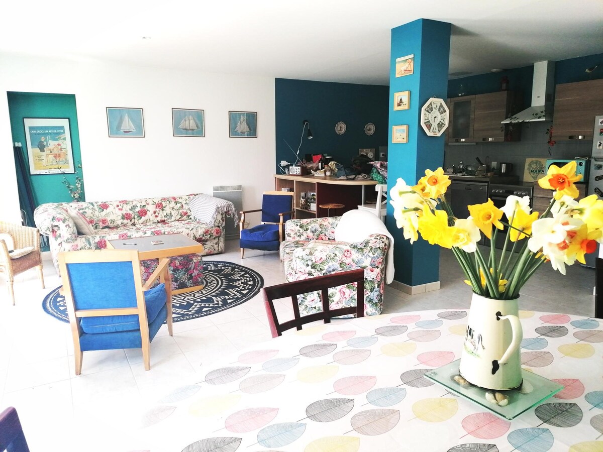 Appartement de 52 m2 avec terrasse de 22 m2 situé à 300 m de la mer dans un environnement calme, à 600 m de commerces du centre ville. ce logement comprend 2 chambres fermées (possibilité de fournir draps et serviettes toilette pour 5 € par chambre), salle d'eau, wc indépendant, un séjour avec clic clac, tv et coin cuisine équipée de lave vaisselle, micro onde et mini four, cafetière, bouilloire, grille pain...etc.