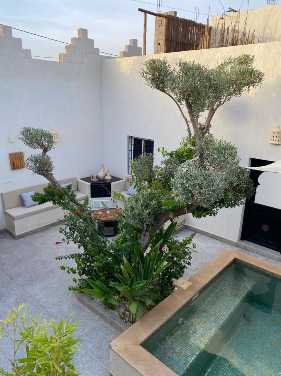 Riad privado en Marrakech con capacidad para 8 personas, con 3 cómodas habitaciones, cada una con baño privado, 3 salones tradicionales marroquíes, un patio luminoso y tranquilo, una terraza soleada perfecta para relajarse, así como una piscina rodeada de árboles. Situado a solo 2 minutos a pie del centro comercial Almazar, cerca de los mejores restaurantes, y a 6 minutos en coche de la famosa plaza Jemaa El-Fna y a 8 minutos del aeropuerto. Tranquilidad, comodidad y autenticidad garantizadas