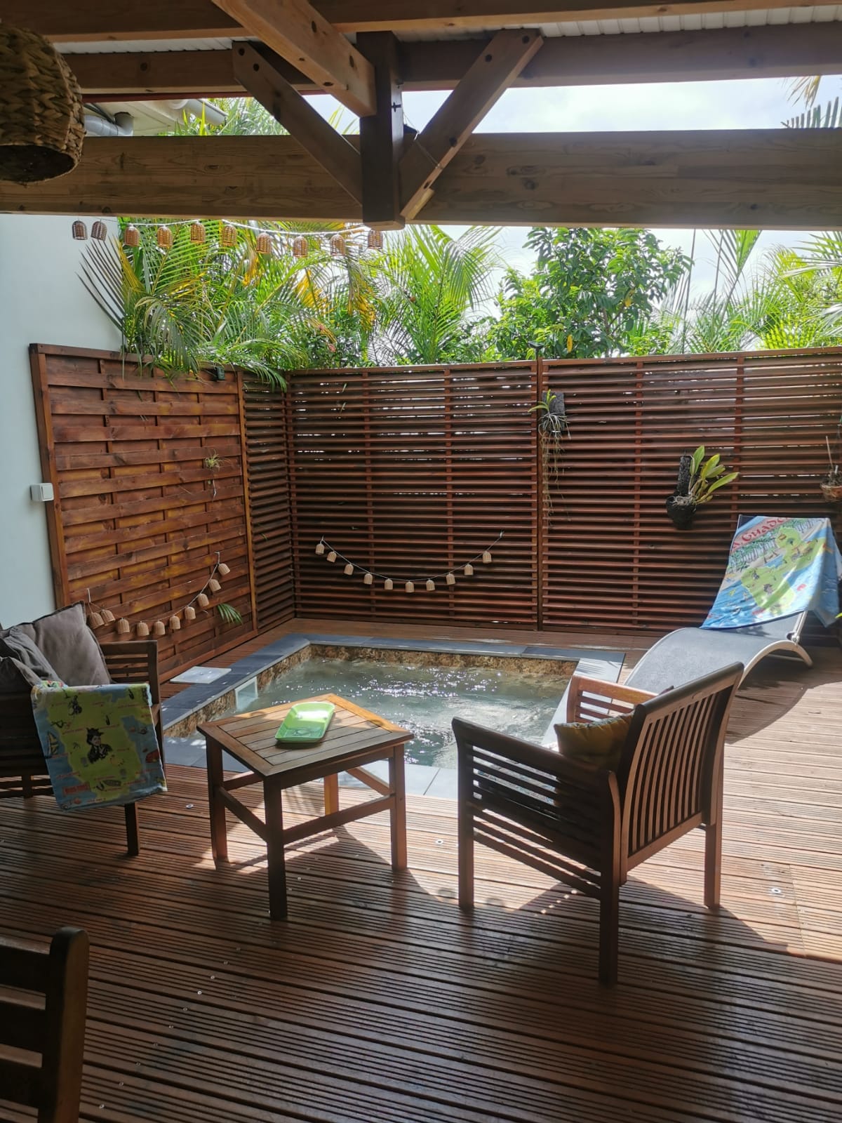 Charmant "Bas de villa" où chaque séjour devient une véritable retraite bien-être 🌿 Offre exclusive : Body Connection Chaque réservation inclut une séance de soins découverte ! Alliant : Sonothérapie / Massage relaxant / Kinésiologie Votre Espace de Tranquillité est composé : D'une grande suite double (45m2) et d'une jolie terrasse (70m2), avec une vue à 180° sur un superbe jardin exotique . L'espace est agréablement fleuri et composé d'un bar, d'un salon et d'une cuisine extérieure.