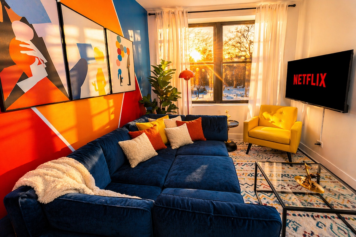 ¡Un oasis urbano en Humboldt Park, donde vive la gente local! Espacio elevado de concepto abierto con paredes de ladrillo a la vista y techos más bajos: • 2 dormitorios, 1 baño + futón • Cocina totalmente equipada. • Espacio privado para sesiones relajadas a altas horas de la noche y buen ambiente 🌿 • Wi-Fi para invitados de 2,4 GHz para correos electrónicos y trabajo ligero • Jardín exuberante • Aparcamiento gratuito y fácil en la calle a 1/2 manzana de distancia • Máquina expendedora en el sitio y lavandería gratuita Los niveles de ruido elevados durante la noche no son un problema. También escucharás los pasos de los vecinos de arriba y los ladridos ocasionales de los perros.