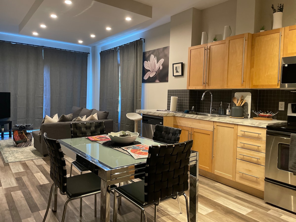 Elegante apartamento cerca del río y la Whyte Ave