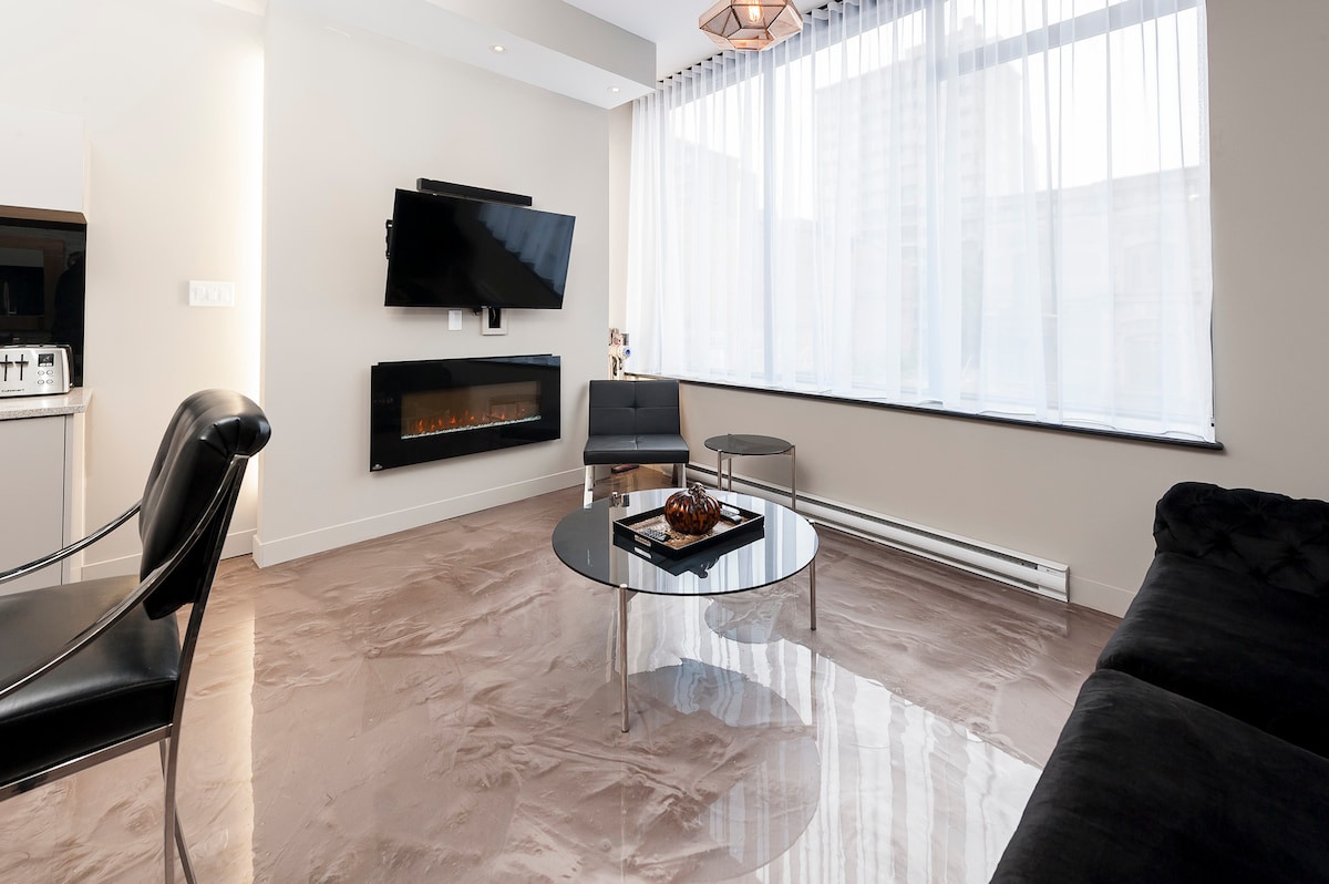 Appartement de style condo de 420 pieds carrés, moderne et lumineux. Que ce soit pour le loisir ou le travail, c’est facile de prendre ses aises quand tout ce qu’on cherche est à portée de la main. Vous avez accès à un balcon privé avec vue sur le centre-ville. Une pièce d'identité et une carte de crédit valide sont requises pour effectuer l’enregistrement. Une pré-autorisation de 250,00$ est capturé lors de votre enregistrement. CITQ: 300840