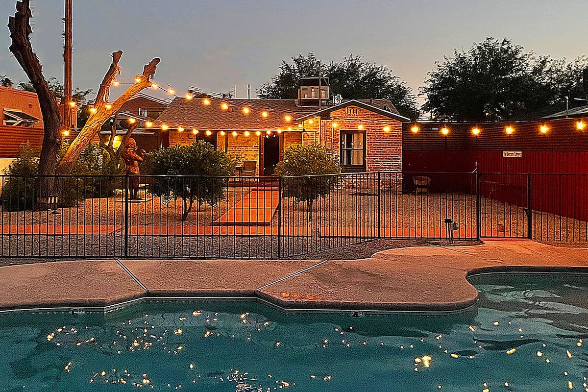 Este estudio es espacioso y cómodo. Es independiente, aislado, en una calle tranquila, con amplio estacionamiento en la calle y completamente vallado. El patio tiene una rama con una mesa, sillas, luces de cuerda y una chimenea. En el interior, te encantarán el adobe expuesto, el tragaluz y los techos de vigas de madera. La cocina totalmente equipada está actualizada, con electrodomésticos de tamaño completo. En el corazón de Armory Park, está cerca de 5 puntos, el centro de la ciudad, la histórica 4th Ave y la Universidad de Arizona. ¡Pregúntame por restaurantes, senderismo, compras y excursiones de un día!
