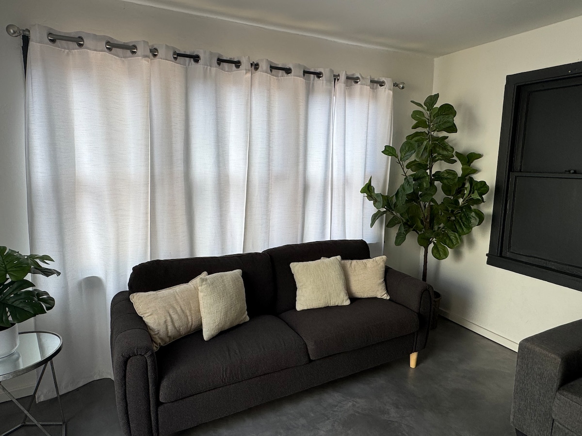 Esta casa se encuentra en el histórico barrio de Hollywood, ¡uno de los barrios más antiguos de Tucson! A 5 minutos del centro de Tucson, a 7 minutos de la universidad, a poca distancia a pie del carril bici del río «Loop» y justo al lado de la I-10 para viajar fácilmente. Esta casita de 350 pies cuadrados es ideal para el minimalista moderno y actúa como una base de operaciones tranquila para tu visita. Wifi 6, TV inteligente, placa de inducción/cocina pequeña y amplio patio trasero están incluidos para que disfrutes de una estancia lo más cómoda posible en nuestra encantadora ciudad.