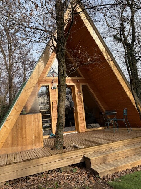 🌜Relájese y disfrute de una vista única desde la terraza de nuestro lodge de madera. Este Lodge ha sido diseñado para acoger a parejas de enamorados o amigos que sueñan con grandes espacios y con sumergirse en plena naturaleza, mientras disfrutan de un gran confort y de una decoración única: piscina privada de hidromasaje a su disposición, así como un baño caliente duo al aire libre en todas las estaciones. Este gran lodge íntimo de 60 m² tiene capacidad para 6 personas y está rodeado de naturaleza virgen.