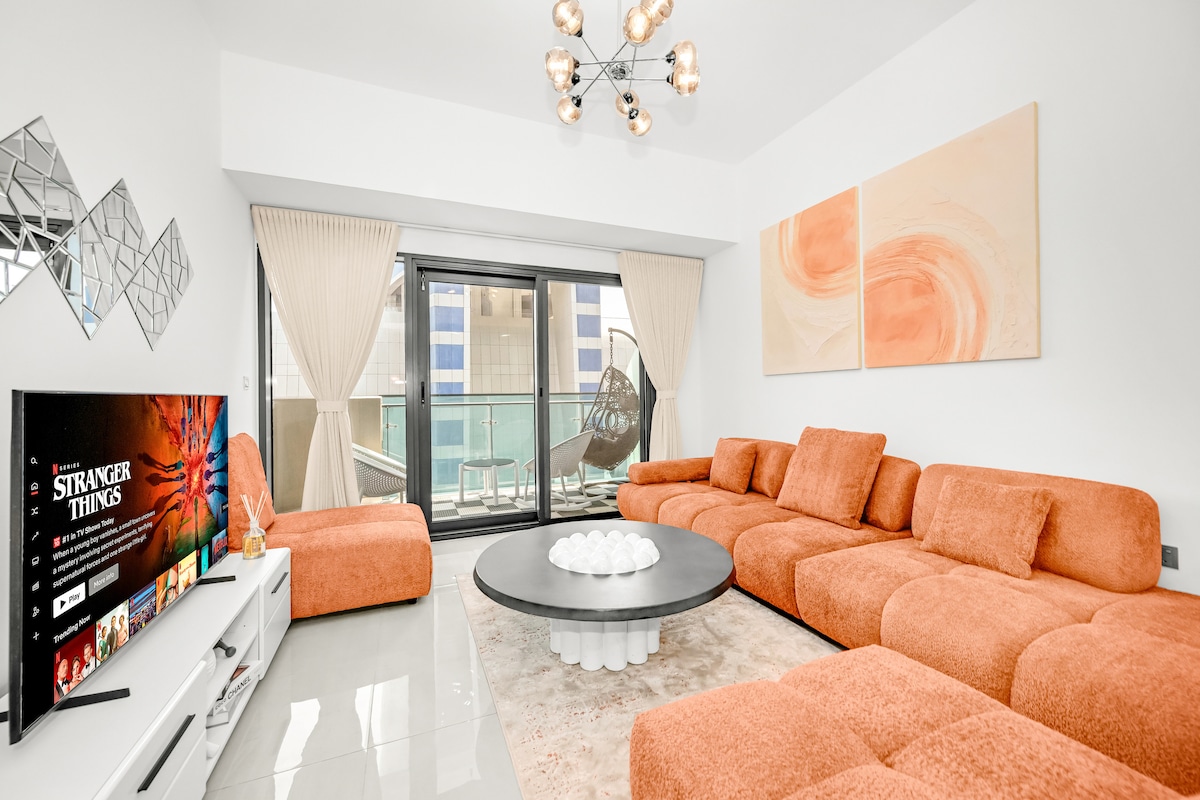 Te damos la bienvenida a nuestro elegante apartamento en el corazón de Dubai Business Bay. Su ubicación céntrica ofrece fácil acceso a restaurantes, cafeterías y un supermercado con todo lo necesario. El diseño moderno, el ambiente acogedor y las impresionantes vistas del Burj Al Arab hacen que este departamento sea perfecto para viajeros de negocios y de placer. Relájate junto a la piscina o mantente activo en el gimnasio: ¡tu estancia aquí será inolvidable!