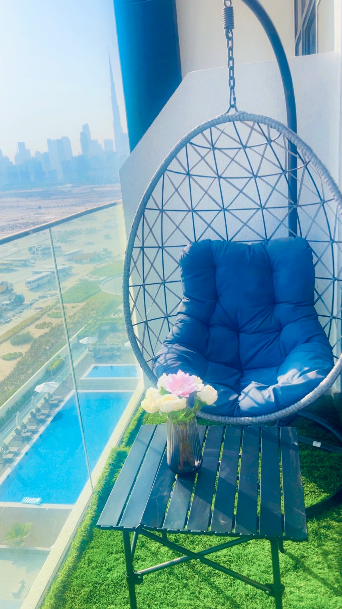 ¡Vida de lujo en Port de La Mer! Disfruta de una cama tamaño king Four Seasons con colchón y sábanas de primera calidad, sofá cama para 2, chimenea de vapor segura, secador de pelo Dyson, cafetera De'Longhi y esterilla de yoga. La mesa del comedor también sirve como espacio de trabajo. Piscina, aparcamiento y acceso a la playa privada incluidos. A pasos del mar, cafés cerca, a 15 minutos del centro comercial Dubai Mall y a 20 minutos del aeropuerto, ¡perfecto para huéspedes que buscan algo especial!