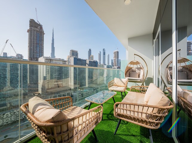 Vistas al Burj Khalifa con balcón de césped en el centro
