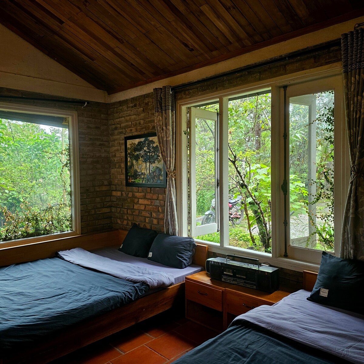 Una casa de madera escondida en un valle de pinos, a 10 km de Dalat. Con 2 dormitorios, cocina, jardín, terraza y arroyo cerca, es un lugar tranquilo y privado, solo una reservación a la vez. El wifi puede ser inestable. Te recomendamos que traigas ingredientes para disfrutar de comidas caseras. Las mañanas comienzan con el canto de los pájaros y el aire con aroma a pino. Un campo cubierto de hierba baja hasta el arroyo, perfecto para tu corazón. Trajes de carretera en moto, CUV o SUV. Una cámara en la terraza garantiza que el espacio interior de seguridad sea totalmente privado.