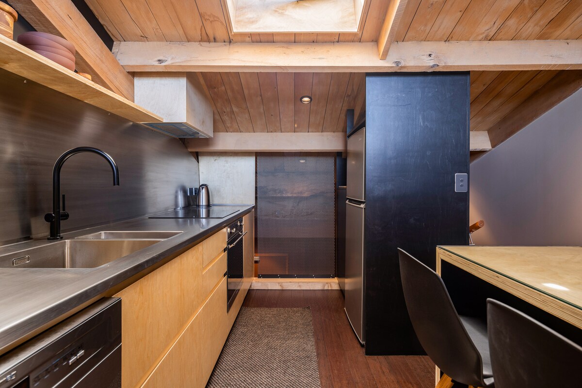 Este alojamiento es nuevo (terminado en julio de 2017) y recientemente catalogado como edificio patrimonial de categoría 1 (importancia nacional) justo en el recinto de almacenes de Dunedin. Está a pocos pasos del Octágono. Son cálidos, están bien aislados y tienen todo lo necesario para una estancia corta o larga. La cocina tiene un banco de madera de fresno, placa de inducción y horno pirolítico. La decoración es totalmente natural con alfombras de lana, edredón, sábanas de algodón de calidad y almohadas. También dentro del apartamento hay una pequeña lavandería.