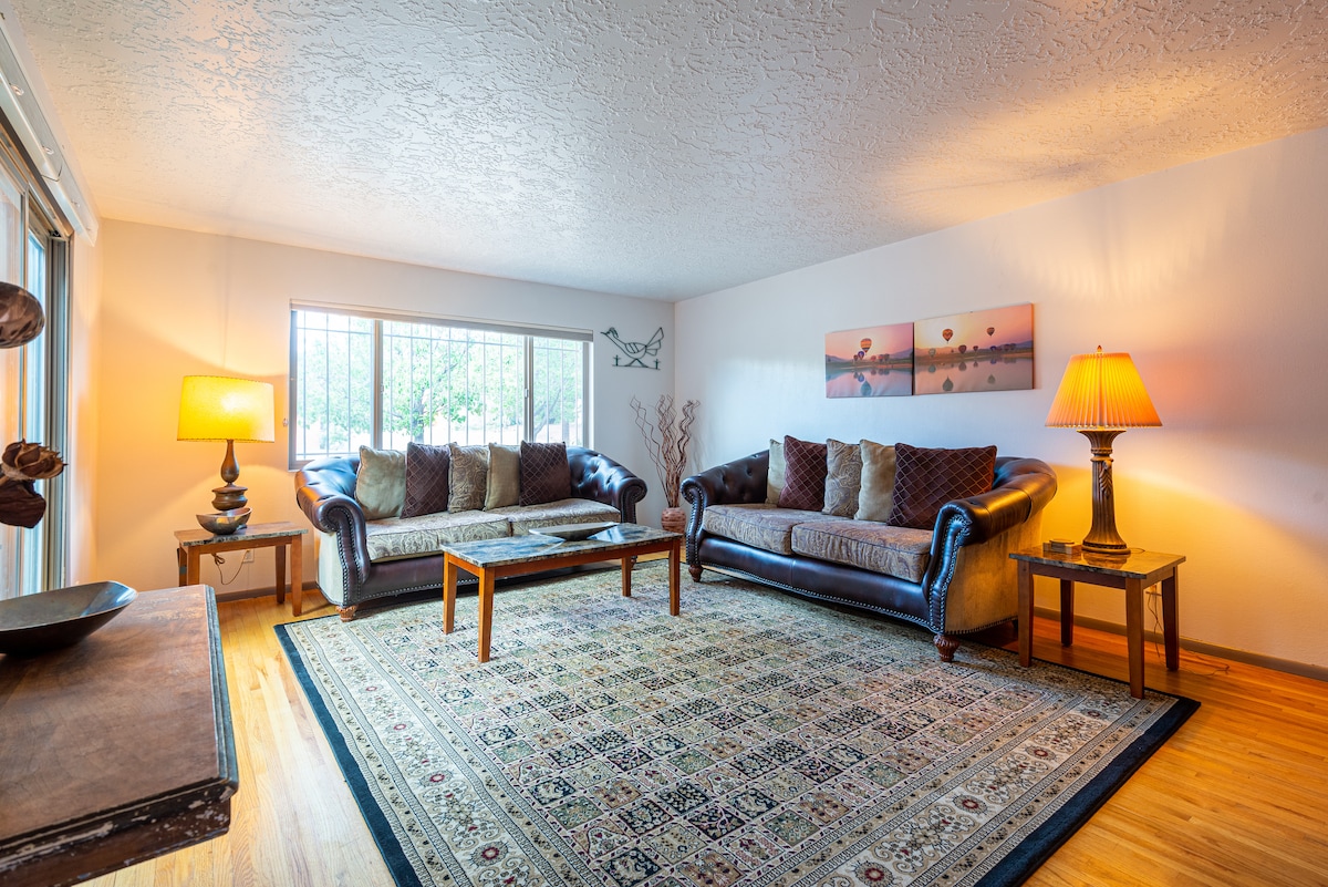 Ven a relajarte en la escapada vacacional favorita de Albuquerque. Esta casa privada de mediados de siglo de dos dormitorios, ubicada en el corazón de Nob Hill (el barrio más establecido de Albuquerque) está a poca distancia a pie de UNM, Route 66 y algunos de los mejores restaurantes y bares de la ciudad. Disfruta de dormitorios limpios y espaciosos con salas de estar diseñadas específicamente para viajes de negocios y una vida cómoda. Ventajas de la casa: cocina lista para cocinar, patio trasero con zona de barbacoa y cine en el sótano con servicios de streaming.