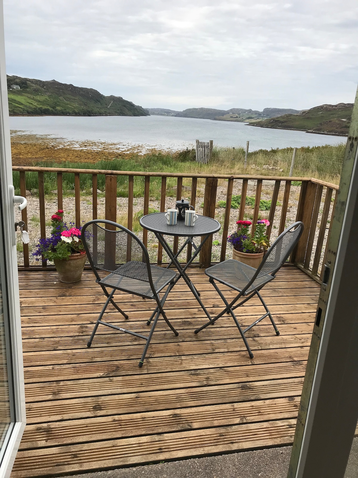 Tenemos un apartamento unido a nuestra casa, un croft de trabajo con vistas a la playa de Polin. En el interior hay un dormitorio grande con baño privado, luego una gran cocina abierta y sala de estar. Hay una cocina totalmente equipada con nevera congeladora, horno y vitrocerámica, microondas y un televisor grande con vistas gratuitas. Hay wifi disponible, pero es lento. En el exterior tiene un espacio de estacionamiento privado con una mesa y un banco para sentarse. No se admiten mascotas. Estamos a tres millas del pueblo Kinlochbervie, pero a cinco minutos a pie de la playa Polin.