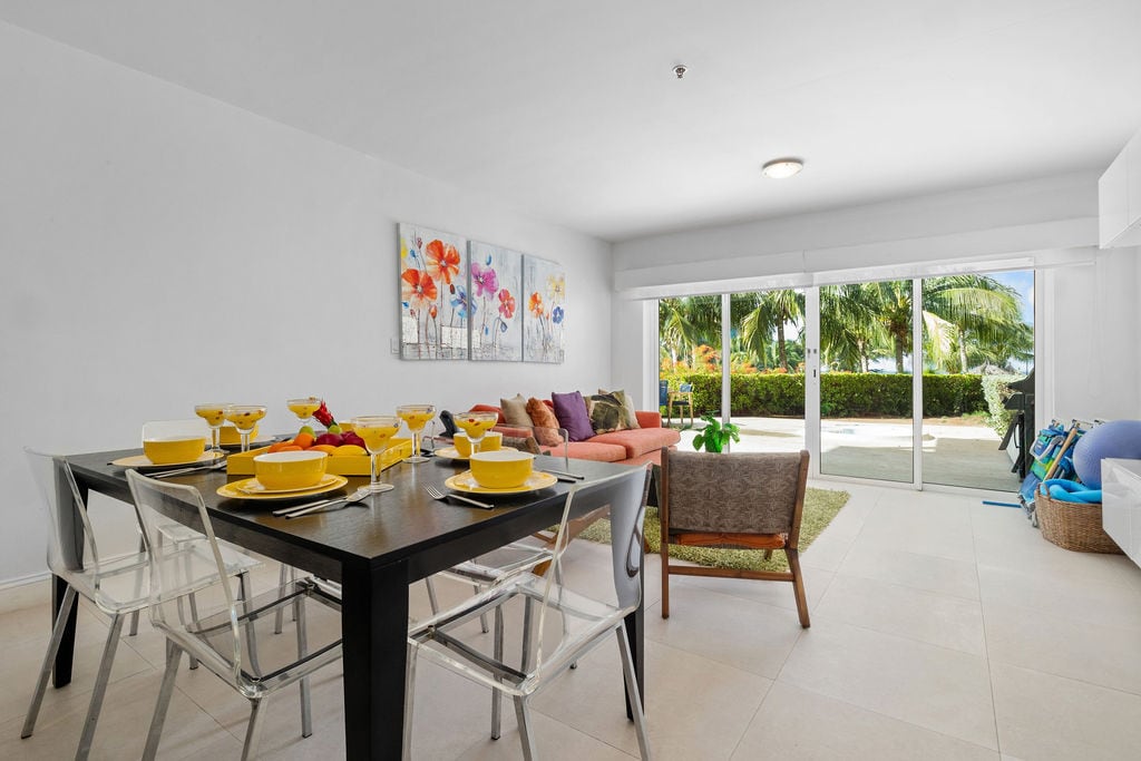 IMPRESIONANTE CASA ADOSADA DE LUJO MODERNA A ESTRENAR, ubicada en LeVent Beach Resort. El espacio tiene 2 dormitorios, con piscina privada y un patio. Una muestra de privacidad dentro de un centro vacacional con acceso a todos los servicios, como seguridad las 24 horas, gimnasio, piscina y mucho más. A solo unos pasos de Eagle Beach, considerada la mejor playa de Aruba. Relájate y disfruta de 2 dormitorios, 2,5 baños, una espaciosa sala de estar de 2 pisos (~1,500 pies cuadrados) con tu propia terraza en la azotea. Tiene capacidad para un máximo de 6 huéspedes.