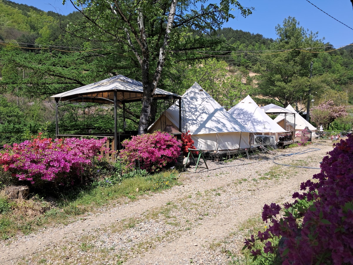 Un poco más allá del glamping de lujo de primera calidad: es un camping reinventado en Banu. Experimenta una dimensión completamente nueva en un camping sin esfuerzo en medio de una exuberante vegetación abierta junto a las orillas del río Noil en el encantador Hongcheon, Gangwondo. Ven y relájate, contempla las estrellas y disfruta del entorno tranquilo. Banu ahora admite mascotas. Puedes traer a tu mascota (cargo adicional de 20.000 won por mascota, debe pesar menos de 8 kg, máximo 2 mascotas por tienda). Si necesitas más información, no dudes en ponerte en contacto con nosotros.