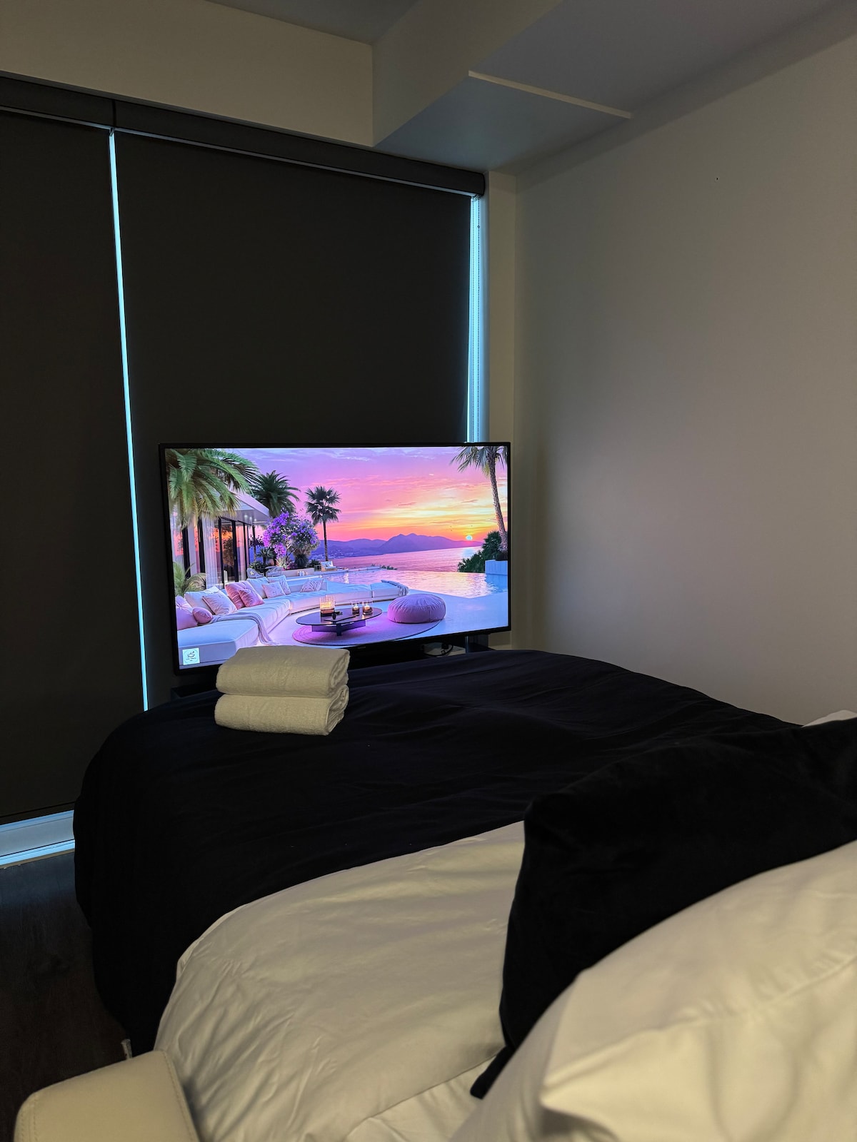 Imagina despertarte con la impresionante vista de la Torre CN perforando el horizonte y su reflejo bailando en el lago Ontario. Después de un día explorando las vibrantes calles de Toronto y visitando lugares emblemáticos como el Rogers Centre, el Scotiabank Centre y el mágico Ripley's Aquarium, relájate en la sala de estar con vistas panorámicas o pasea hasta los restaurantes y la vida nocturna cercanos. Equipado con utensilios básicos de cocina y comedor, toallas, sábanas y artículos de aseo. Disfruta de tu programa favorito en la televisión inteligente.