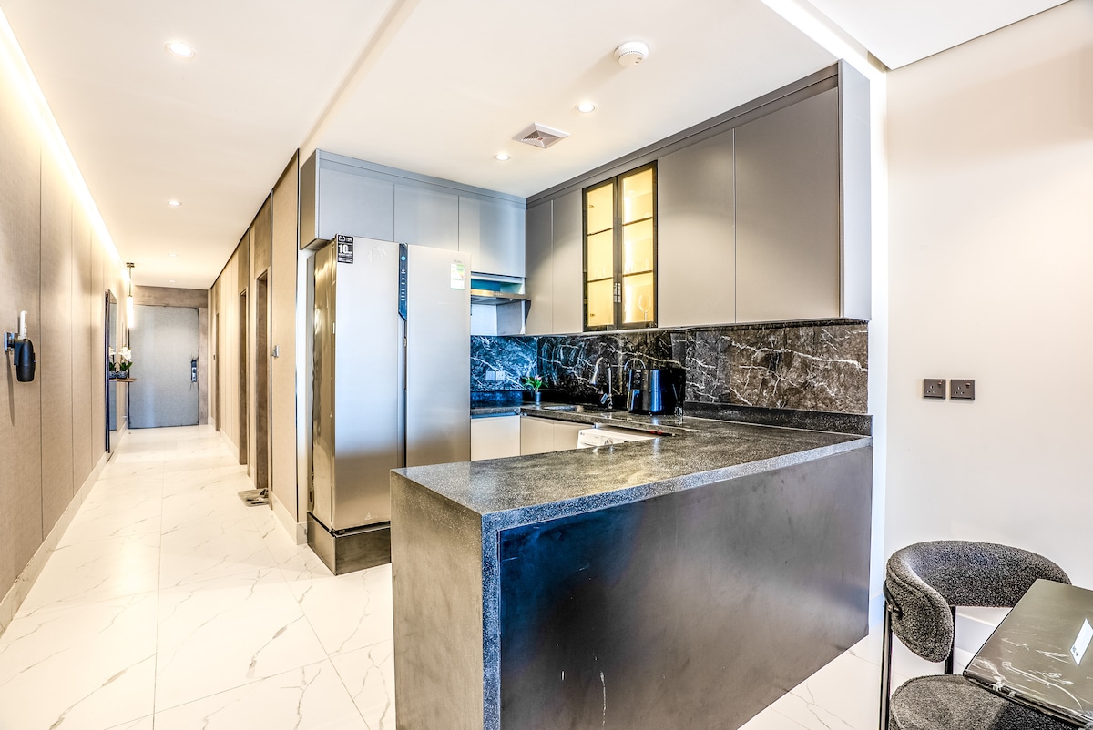 Un apartamento de lujo, equipado con muebles modernos y todos los servicios para la comodidad y la relajación. Consta de dos dormitorios principales y una cama supletoria gratuita, 4 baños y una sala de estar con capacidad para 6 personas, y una sala designada para la lavandería, además de una cocina totalmente equipada. El apartamento también te da acceso al gimnasio, piscina, salón y sala de reuniones.