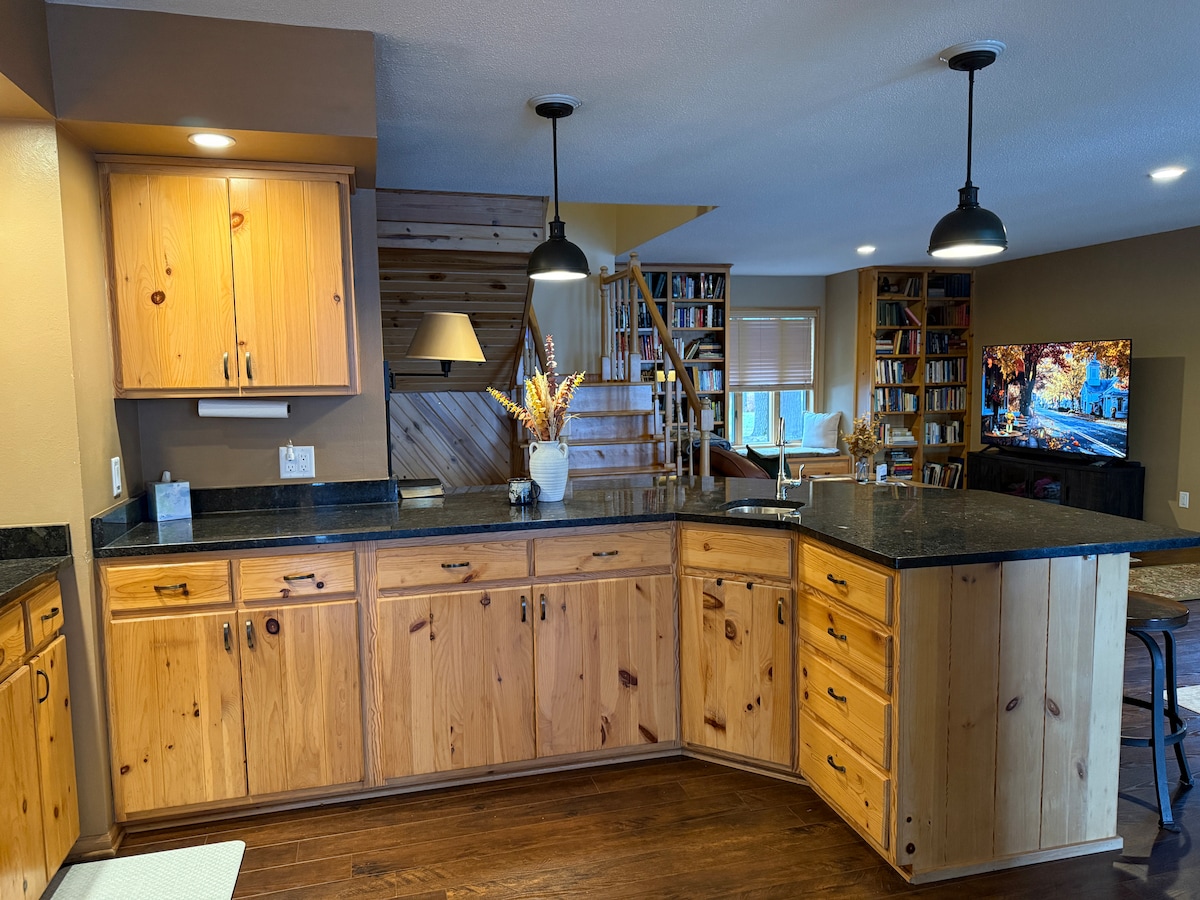 Bienvenido a nuestra casa de mediados de siglo encaramada en lo alto de la colina, con vistas al resplandeciente lago Altoona. Ubicada entre los pinos, se siente como una escapada privada, pero está a solo unos pasos de River Prairie Park y a solo unos minutos de la ciudad. Con vistas panorámicas, atardeceres resplandecientes y detalles cuidados en todo el espacio, este lugar está diseñado para la conexión. Trae a toda la familia. A los niños les encantará el cine de abajo. *Evento apto para mayores de 15 años (club de lectura, meditación, baby showers, etc.) **Alojamiento ecológico*