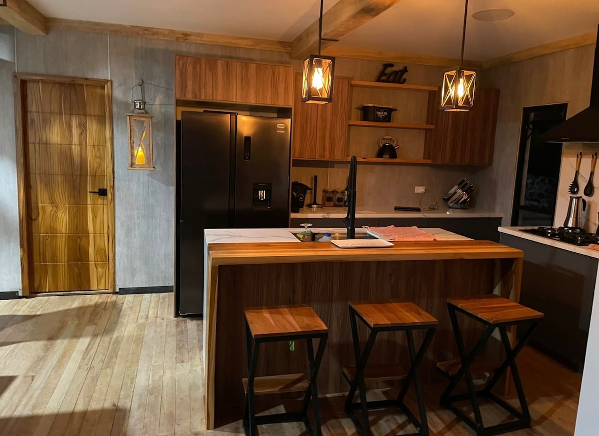 Un exclusivo glamping de cabañas elegantes en medio de las montañas, construidas con piedra, muy cercana a la turística ciudad de Baños. Atendidas personalmente por los dueños Patricio y Lily. Con vistas al volcán y al río, perfecto para los amantes de las caminatas y el aire libre. Estratégicamente ubicado, permite disfrutar de la naturaleza y explorar atracciones cercanas. El diseño interior refleja encanto rústico, proporcionando un refugio lujoso tras las actividades al aire libre.