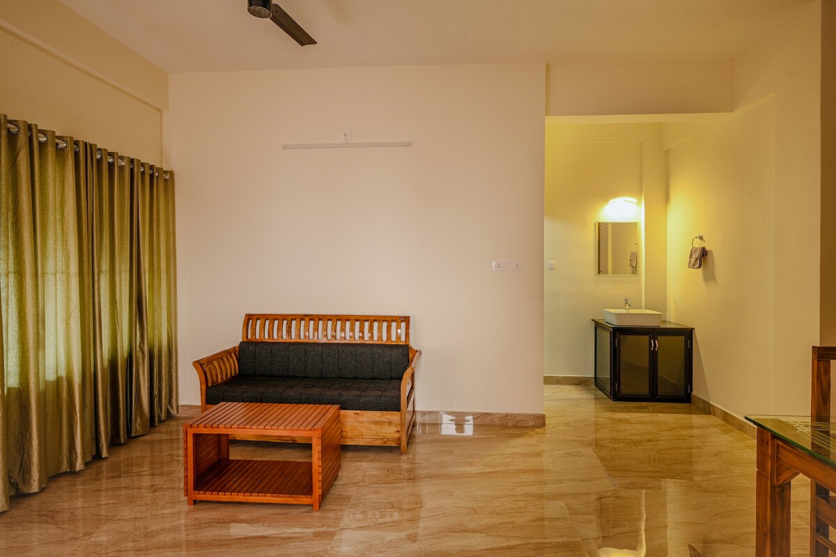 Acogedor chalet en forma de A | Planta baja | Estancia en Wayanad