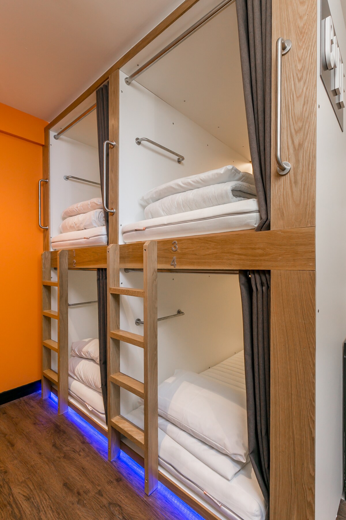 Alojíese en el centro de Edimburgo por menos de lo que cree. Una litera en un animado dormitorio mixto, en pleno centro de la ciudad, a pocos pasos de la Royal Mile, Grassmarket y el Castillo de Edimburgo. Todas las camas cuentan con luz de lectura, enchufe personal, casillero seguro y sábanas limpias, para que no tenga que pagar precios de hotel. Se comparte con otros viajeros que entienden que usted está aquí por la ciudad, no por la habitación. Inteligente, central y realmente asequible. La mejor base en Edimburgo no tiene por qué costar una fortuna.