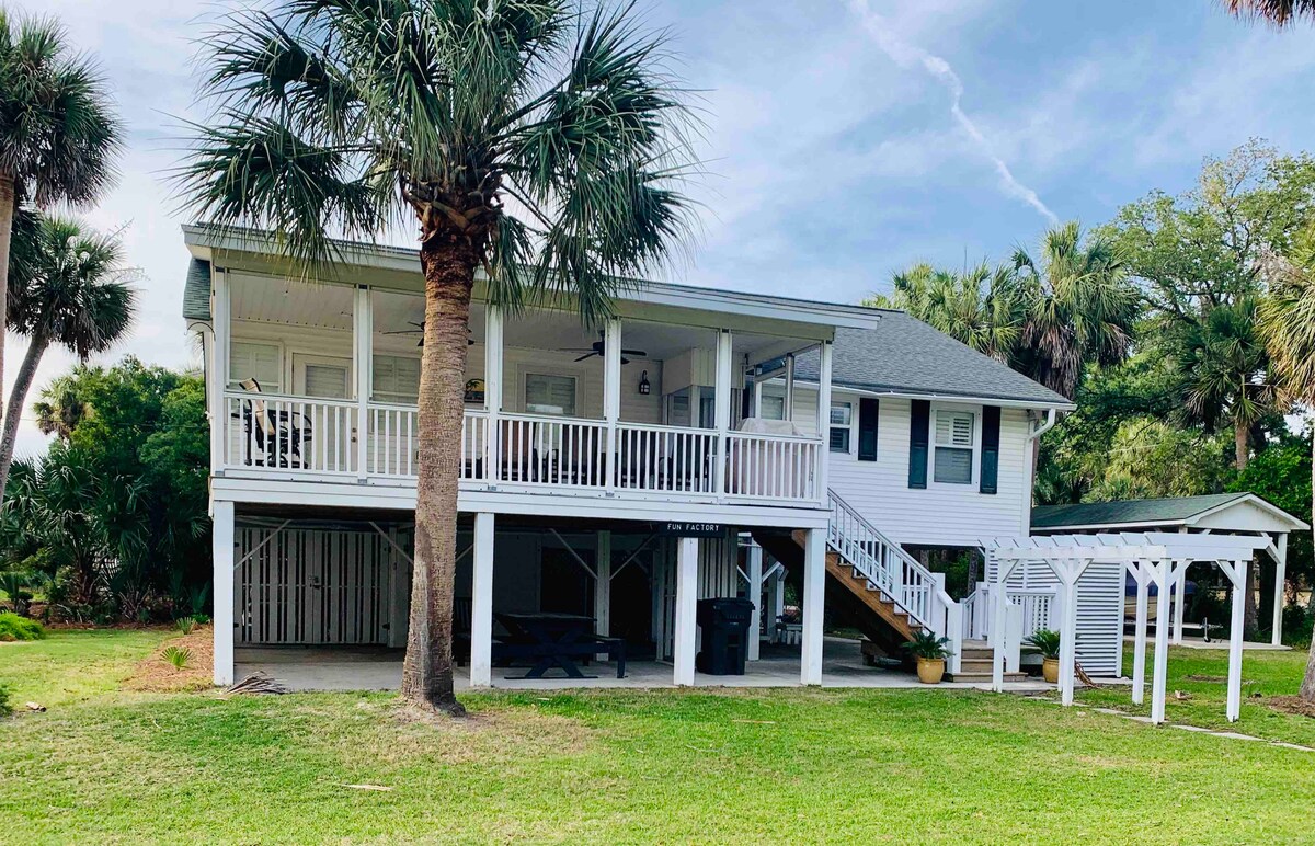 ¡Cabaña romántica en tres acres rodeada de hermosos canales de Carolina del Sur con vistas infinitas por todos lados! La casa es apta para perros, tiene un patio delantero totalmente vallado y un porche protegido. Cocina completa, estacionamiento privado, lavadora y secadora, TV de 55 pulgadas con DirecTV. A 10 minutos en coche del parque estatal Hunting Island y a 20 minutos del centro de Beaufort y de las principales atracciones. ¡La casa de campo está bellamente amueblada con piezas personalizadas para que esta sea tu mejor escapada de lujo a la campiña!