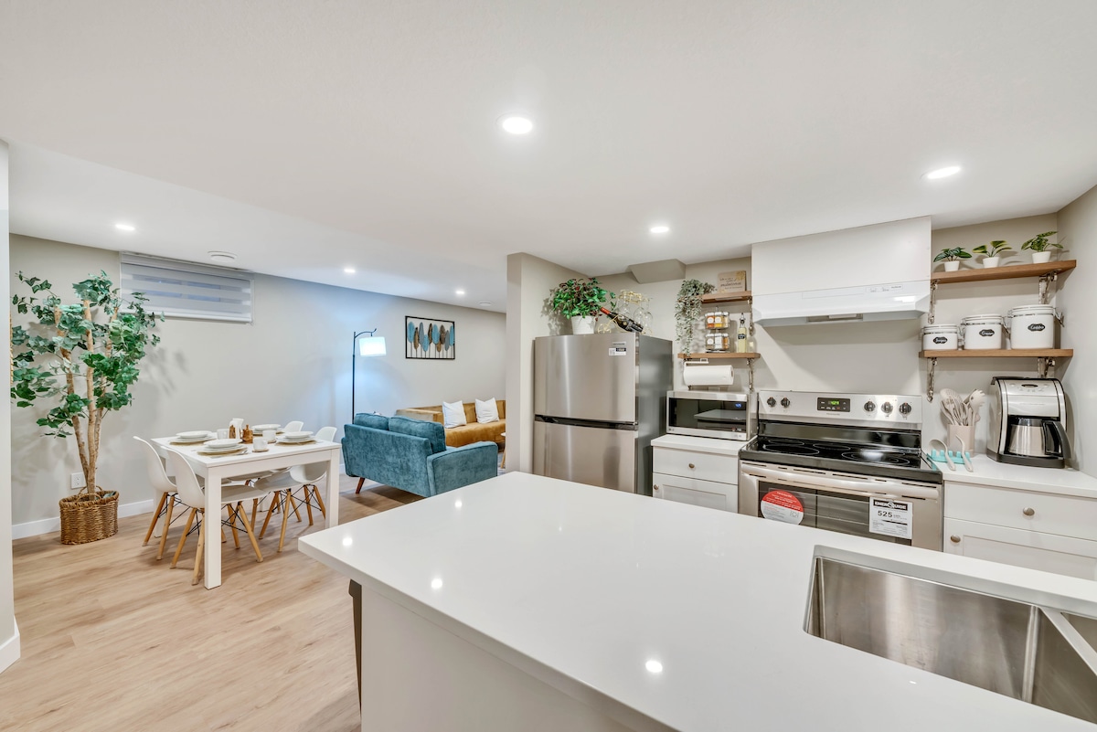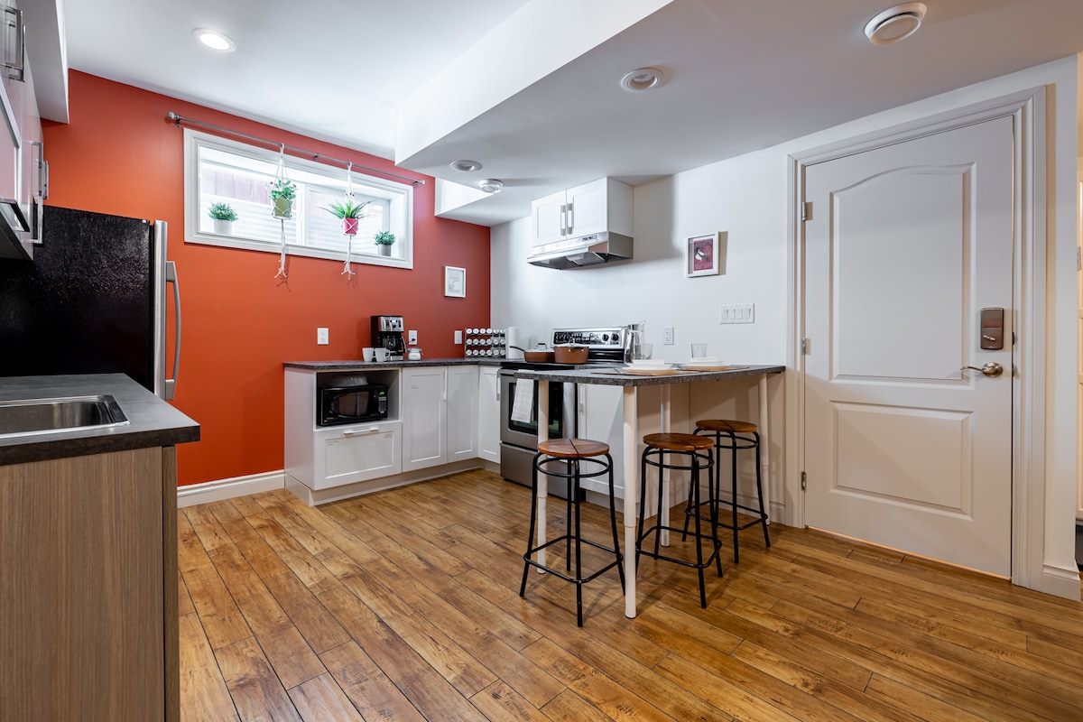 Hermosos recuerdos te esperan en nuestra nueva suite ejecutiva, impecable y espaciosa en el sótano legal de 2 dormitorios. Aquí tendrás una experiencia de sueño de 5 estrellas a un precio de 1 estrella. Entra en nuestro moderno sótano de entrada privado totalmente equipado y amueblado con buen gusto para satisfacer todas tus necesidades. Nuestra suite tiene insonorización que reduce el ruido del piso principal, pero es posible que escuches sonidos ocasionalmente. Los dormitorios tienen cama tamaño queen y cama de tamaño completo y asiento de amor en la sala de estar. Servicio de verificación autónoma