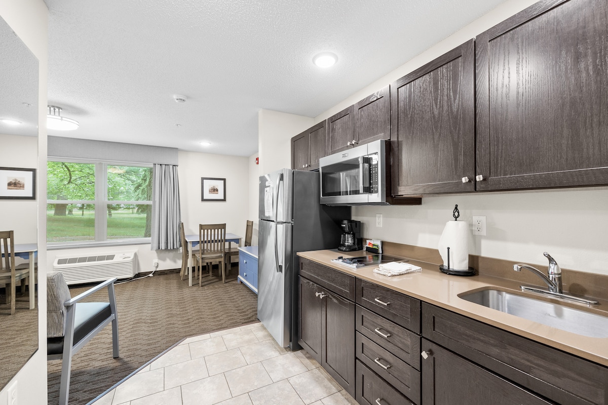 Entrando en Independence Stay of Marinette, notará nuestro personal acogedor y el diseño abierto de nuestro lobby. Nuestro objetivo es hacerte sentir lo más en casa posible con una nevera de tamaño completo en cada habitación. Una encimera de cocina de dos quemadores junto con un microondas de tamaño completo. En esta habitación verás una cama tamaño king, un amplio tocador, una televisión de pantalla plana montada, además de proporcionar platos, cubiertos, ollas, sartenes y utensilios de cocina. ¡Esperamos que elijas quedarte con nosotros!