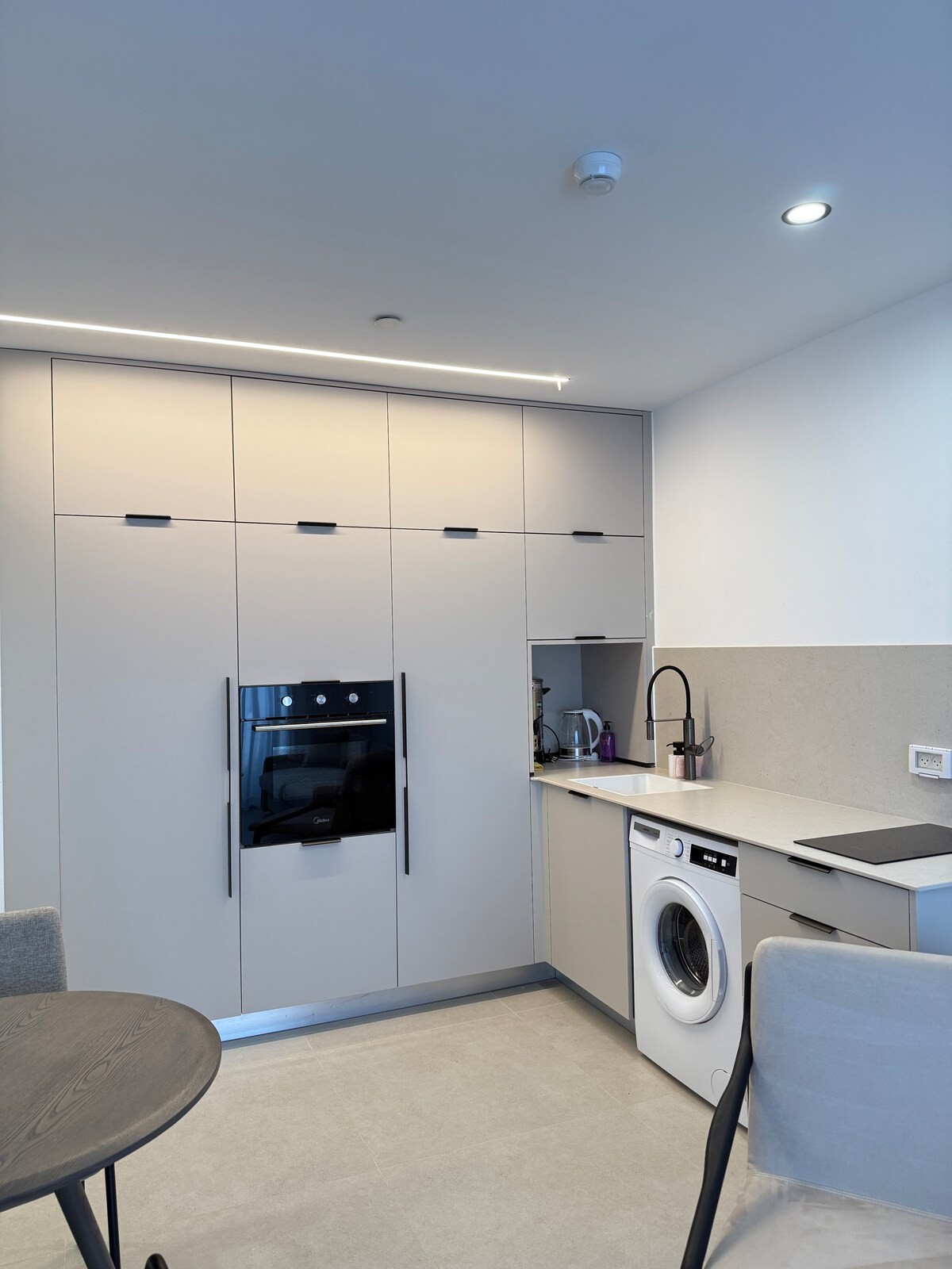 There is is safe room at the apartment. New building , central location close to caffès , restaurants and supermarkets . 2 bedrooms ( one of them is a safe room ) 2 bathrooms , well equipped kitchen and great sunny porch . There is 2 elevators at the building .The apartment fit for max 4 adults and a child up to 12 years old .We welcome adults and families , unfortunately we do not host teenagers under the age of 23 years old . It is non smoking apartment , you may smoke at the porch .