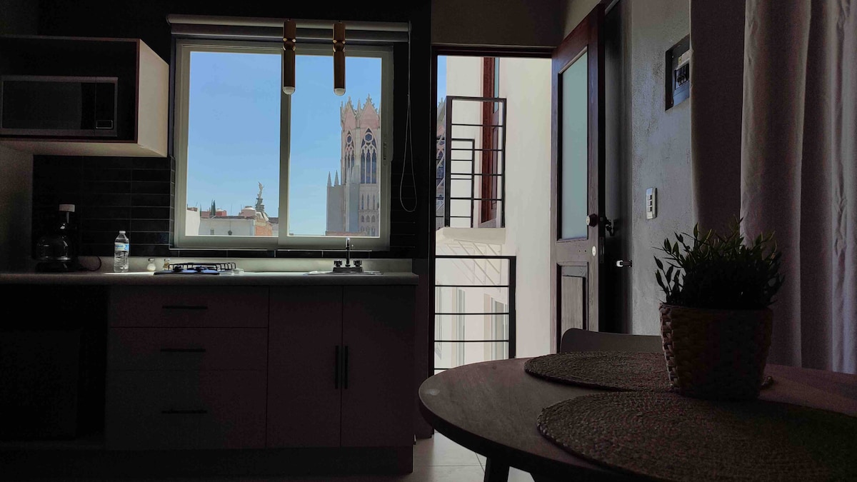 ¡Despierta con una vista que te enamora! Disfruta tu café en el balcón mientras la luz del amanecer llena el espacio. Este departamento cálido y acogedor es ideal para descansar o trabajar cómodamente. Cuenta con cocina equipada, A/C, cama confortable y estacionamiento gratuito. Ubicación estratégica y ambiente tranquilo para una estancia relajada en León.