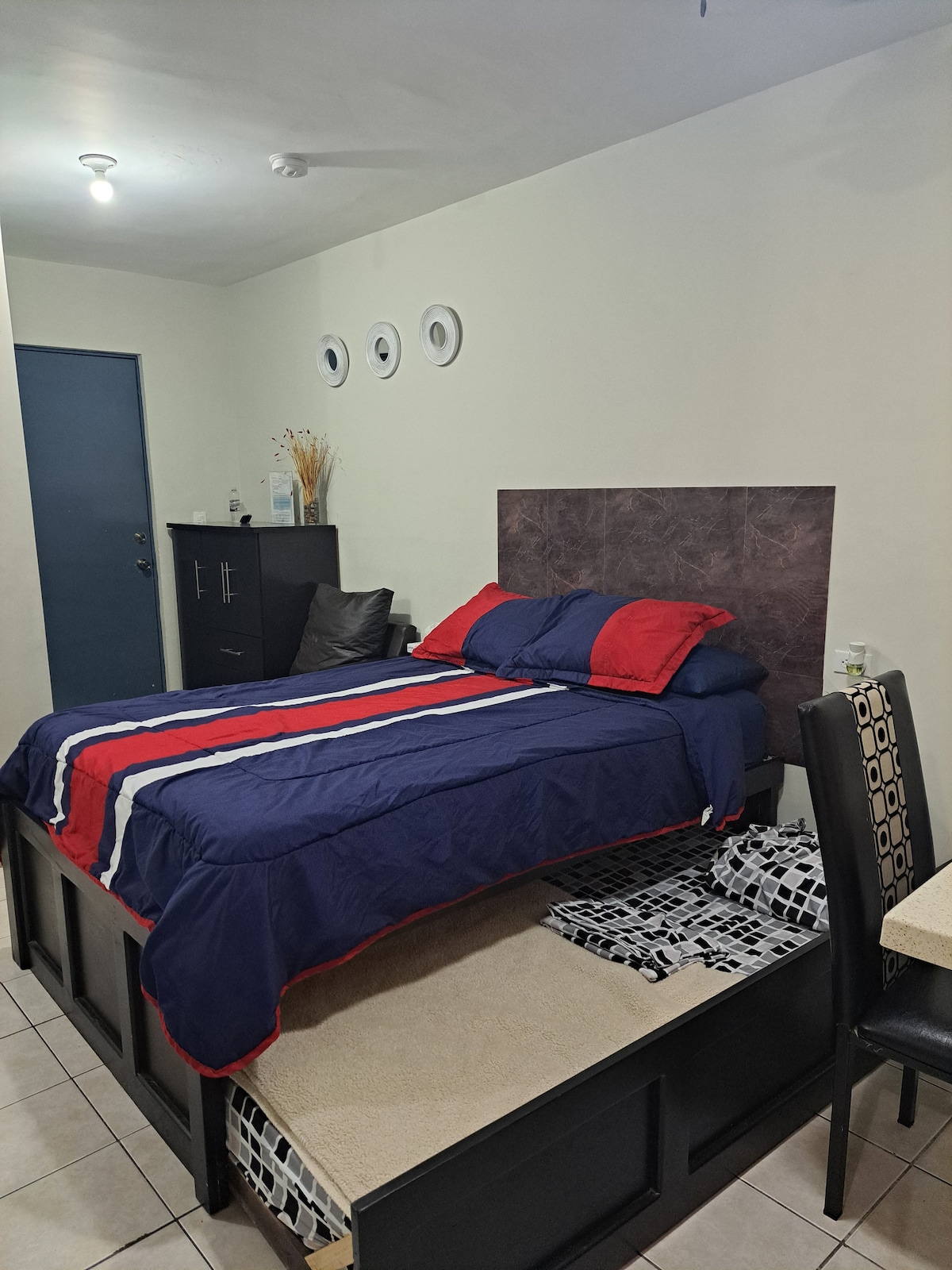 Suite Ejecutiva al Poniente de Monterrey en Edificio Privado y Seguro, con acceso controlado por medio de Cerradura Inteligente. Cuenta con una Recamara Cama Queen Size, con Cama, Buros, Cajonera, y Espejo, Aire Acondicionado Frio/Calor, Abanico de Techo, Baño Privado con Regadera, Sanitario y Lavamanos, Balcon, Televisión 43 Pulgadas y Wifi . A 2 Minutos de Paseo de los Leones. La Cocina y Lavandería es compartida con las suites del piso. Se puede rentar por estancias cortas y a largo plazo.