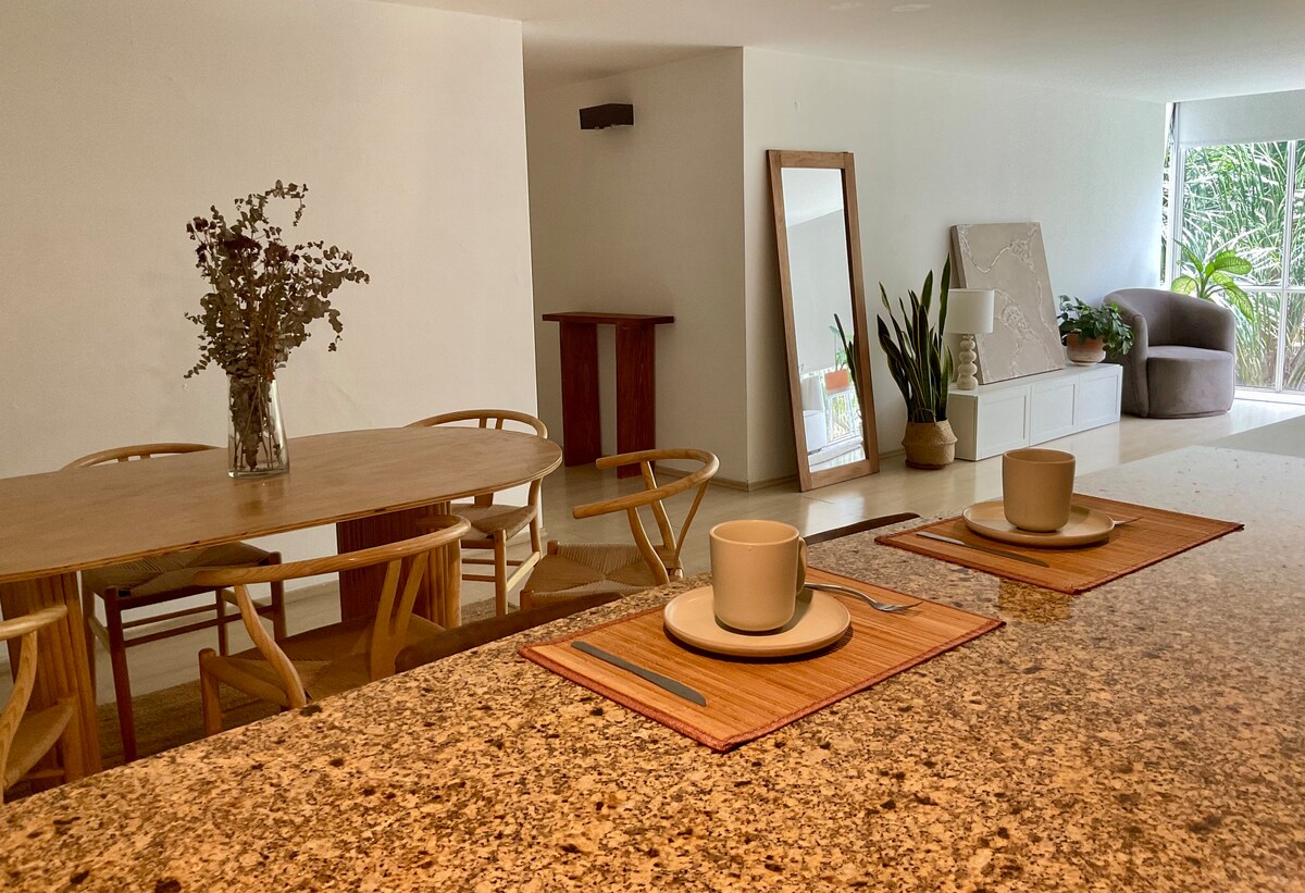 Enjoy your stay in this beautiful and spacious modern apartment, thoughtfully designed with stylish furniture and curated details that create a warm and sophisticated atmosphere. Fully equipped for a comfortable and memorable stay. Located in the heart of Hipódromo-Condesa, one of Mexico City’s most vibrant neighborhoods, just steps from parks, great cafés, best restaurants, and bars. Perfect for travelers seeking a stylish stay in a prime, walkable location.