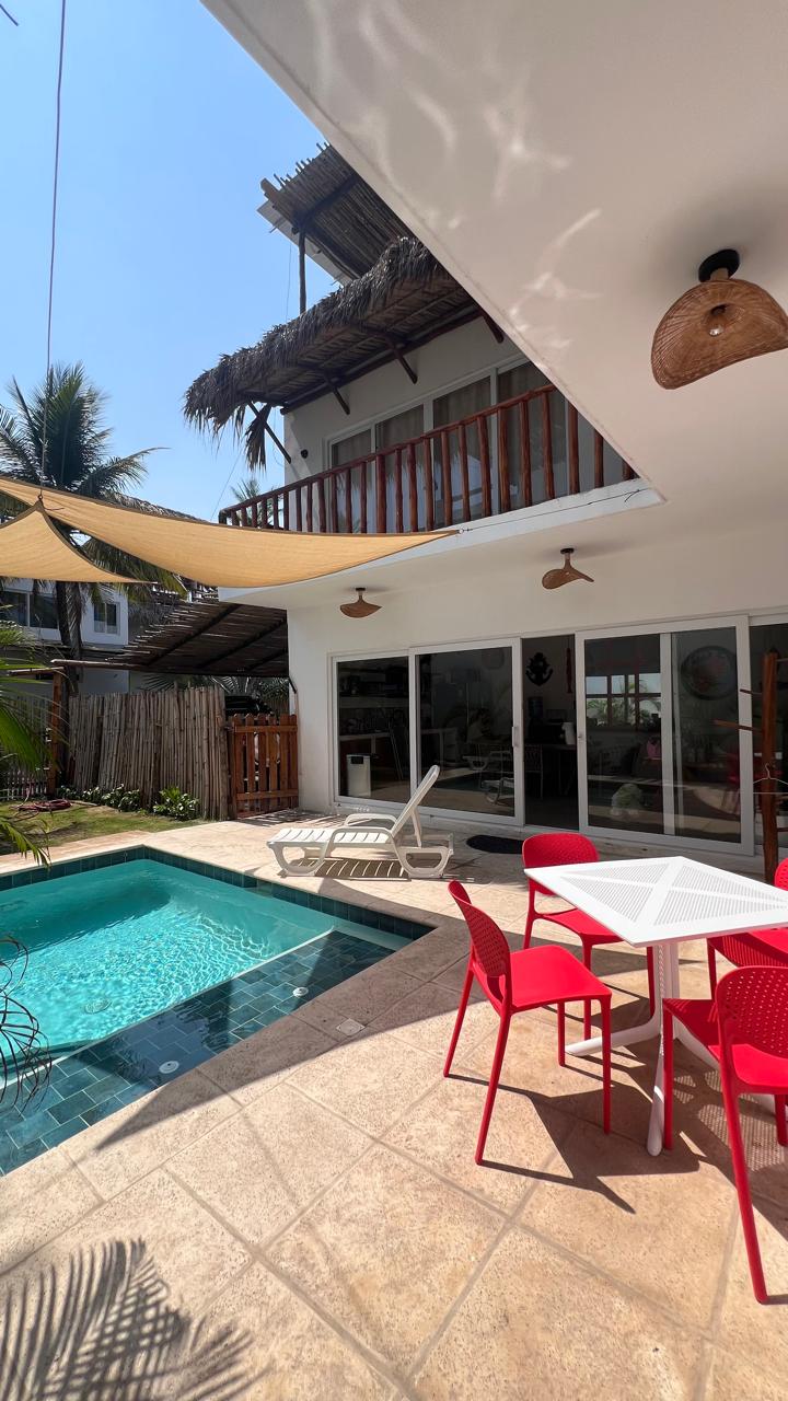 Esta hermosa y elegante villa es un lugar privado encantador para disfrutar de la comunidad de El Paredón con comodidad. Arriba, la habitación tiene aire acondicionado, baño privado con agua caliente, ropa de cama de alta calidad y una terraza con hamaca. En la planta baja, la cocina, el salón y el comedor, así como la piscina con sistema de sal, te aseguran que tienes todo lo necesario para una estancia relajante y cómoda. Rodeada de plantas tropicales y naturaleza y a solo 3 minutos a pie de la playa, es el lugar perfecto para relajarse.