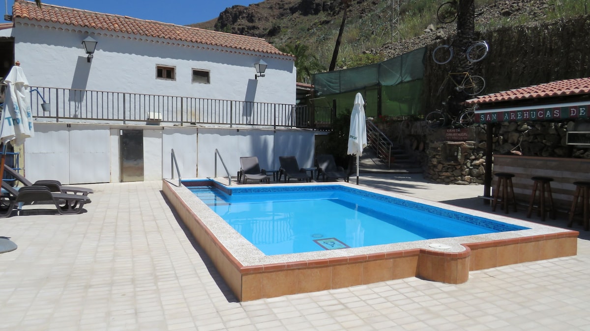 Ubicada en la ladera sur de la isla, en la caldera volcánica de Tirajana, un lugar idílico. La vista se abre 360 ° a los palmerales del valle y los picos volcánicos. Cuenta con una piscina con cascada, climatizada y tratada con sal. Está en una finca junto a otra casa de vacaciones para dos personas. Ambas casas son completamente independientes y tienen sus propios accesos y servicios, siendo el parking y la piscina las únicas áreas compartidas. Por lo tanto, la privacidad está garantizada.
