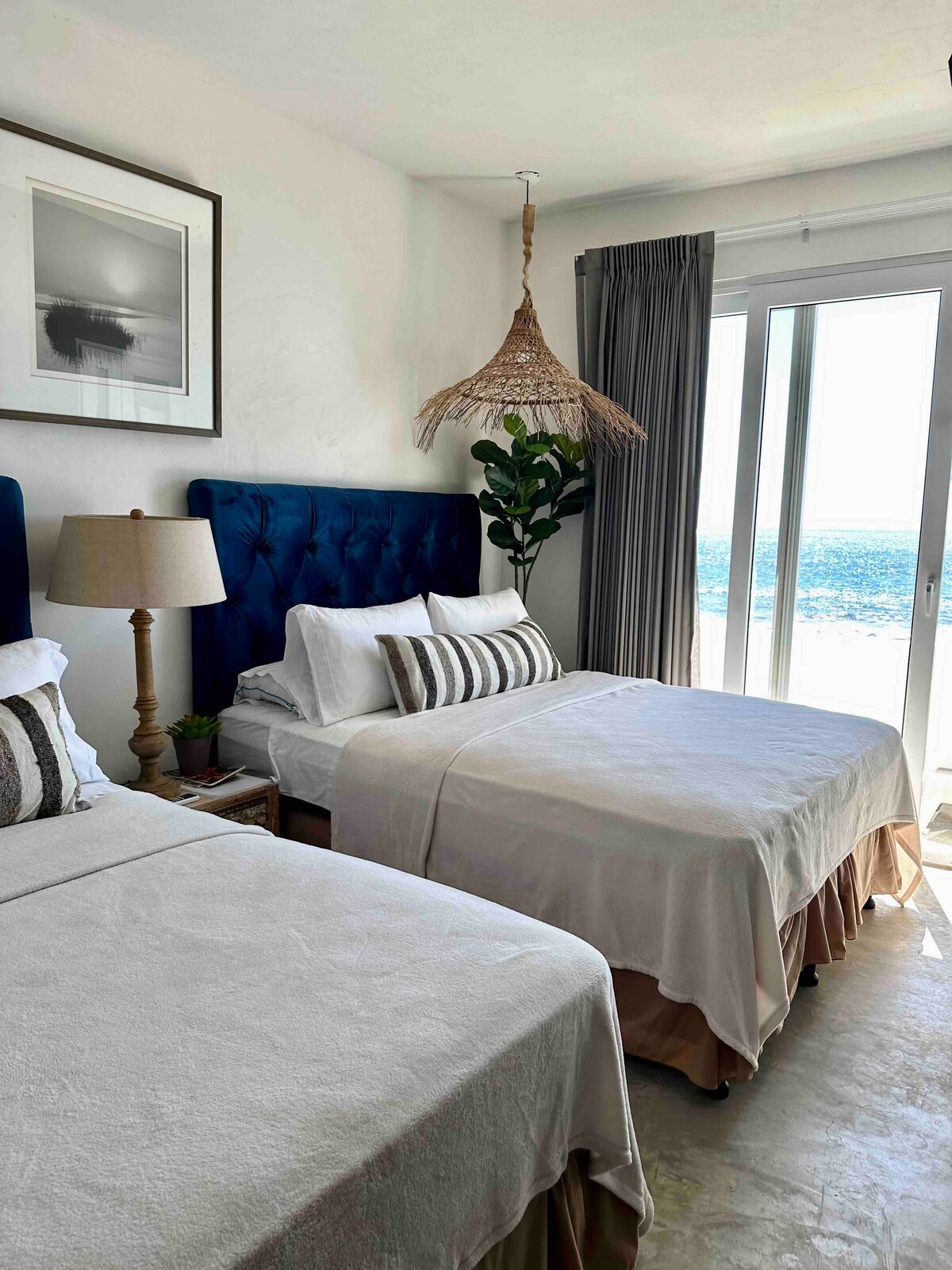 Diviértete con toda la familia en este alojamiento con estilo, elegancia y comodidad de lujo. Vive la experiencia de un elegante lugar con una espectacular vista al mar y piscinas frente a la playa, donde podrás disfrutar del amanecer y atardecer de una manera especial. Habitaciones limpias, cómodas y camas premium Serta. Cuenta con 3 habitaciones, 1 principal y 2 secundarias 2 baños completos, Aire acondicionado, sala, wifi, TV, comedor, cocina totalmente equipada y parrilla para azar.