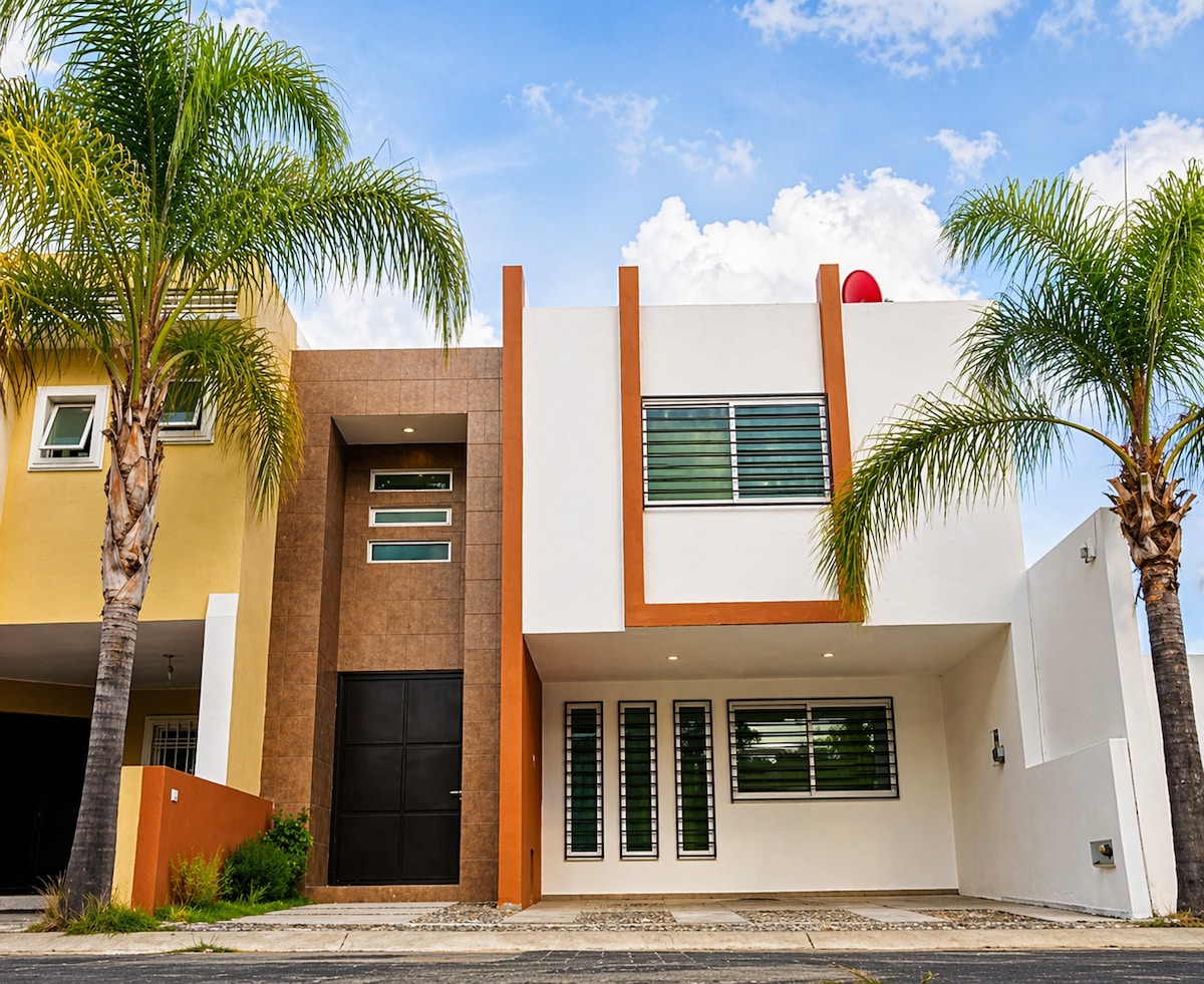 Relájate en este espacio tranquilo y elegante, ideal para pasar unos días de descanso. Con alberca privada climatizada ( 30 a 32 grados), relajante jardín, terraza abierta, cocineta y asador esta completamente equipada. Cuenta con 2 recamaras con un excelente diseño y preparadas para que disfrutes de un descanso placentero, con cama King en la principal y Queen en la segunda recamara ✔ Minisplit en ambas recamaras. ✔ Mini enfriador en recamara principal ✔ Internet en toda la casa de 500 Megas