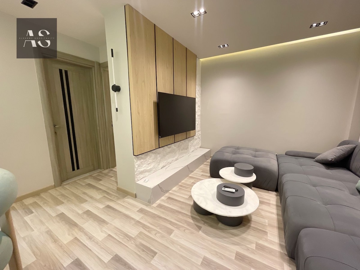 Moderno apartamento de 3 dormitorios con jardín privado y asientos al aire libre en Mountain View I-City, Nueva El Cairo. Amueblado con muebles de primera calidad, ropa de cama de lujo, 3 televisores inteligentes, aire acondicionado en todas las habitaciones y cafetera.La suite principal tiene baño privado y vestidor.El complejo ofrece autobuses a Madinaty y Rehab, canchas deportivas, áreas de juegos para niños, además de Starbucks, tienda de conveniencia y puestos de comida en el lugar.