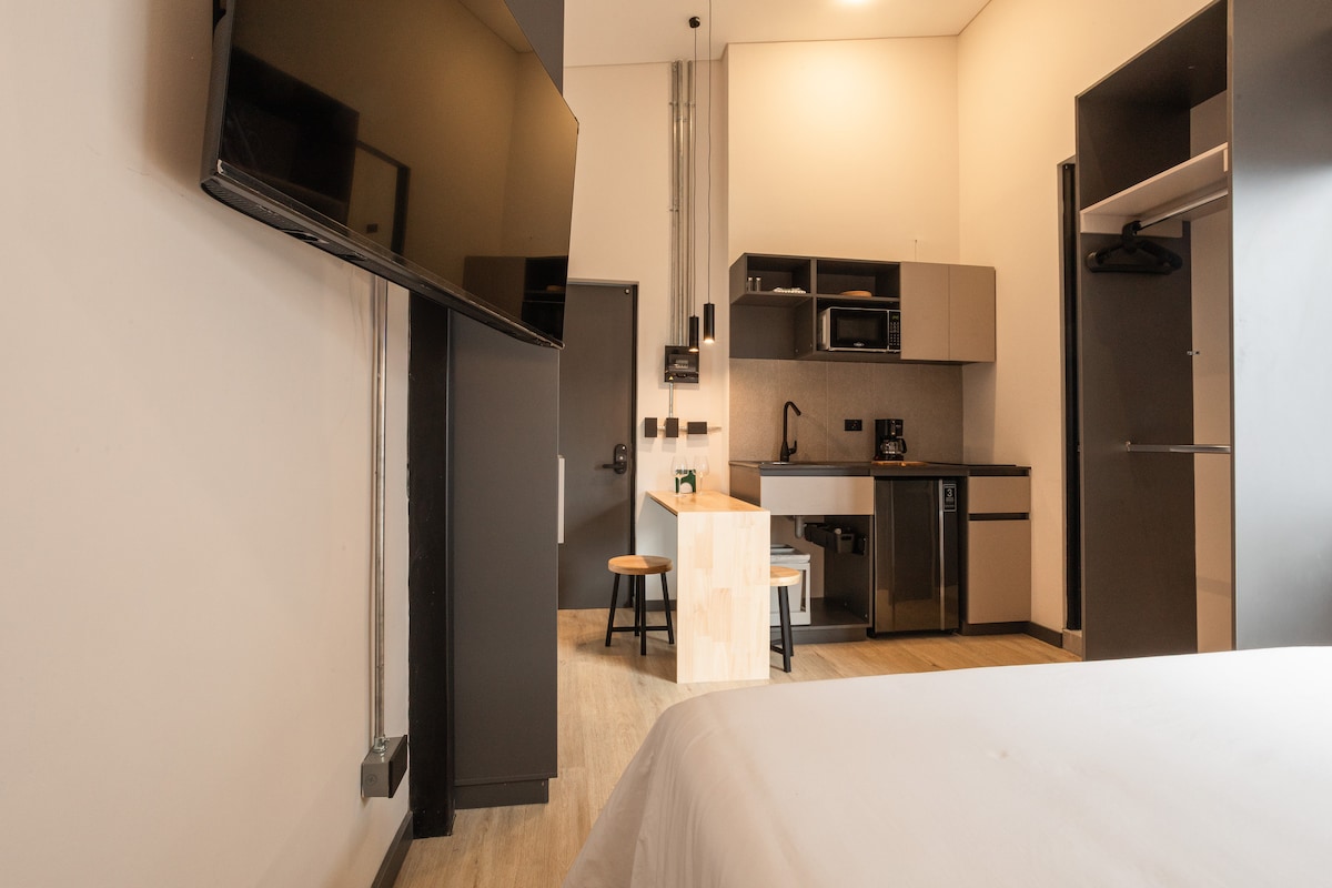 Es un aparta estudio amoblado bien dotado con servicios y sus elementos, con ubicación estratégica en Manizales , queda al frente de la Universidad Autónoma de Manizales (Zona Universitaria) y a sólo 5 minutos del centro de Manizales, con facilidad en transporte y espacio iluminado naturalmente, silencioso, cómodo y con buena vista a paisaje natural donde puede ver algunas aves. Es un espacio diseñado que combina confort, estilo y privacidad en un solo ambiente.