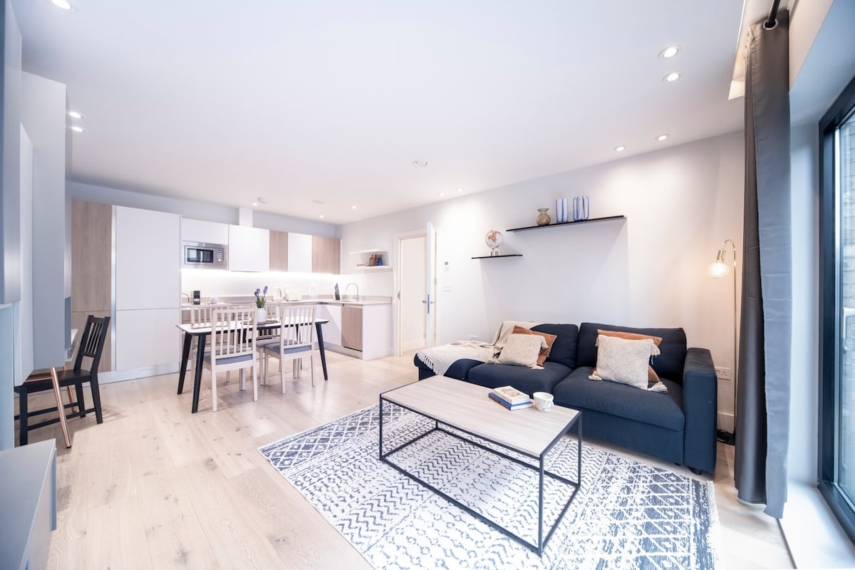 This modern and stylish 1-BR flat is perfect for up to 4 guests. It features a spacious living area with a sofa-bed, chairs, a desk with a monitor, and a Smart TV. A well-equipped open kitchen with a Nespresso machine, a bathroom with a spacious bathtub, a separate bedroom with a double-size bed and ample storage space. It is ideally situated in Zone 1, only a 5-minute walk from Elephant & Castle tube and train stations, 2 stops from the Big Ben and London Bridge! Say goodbye to slow WiFi!