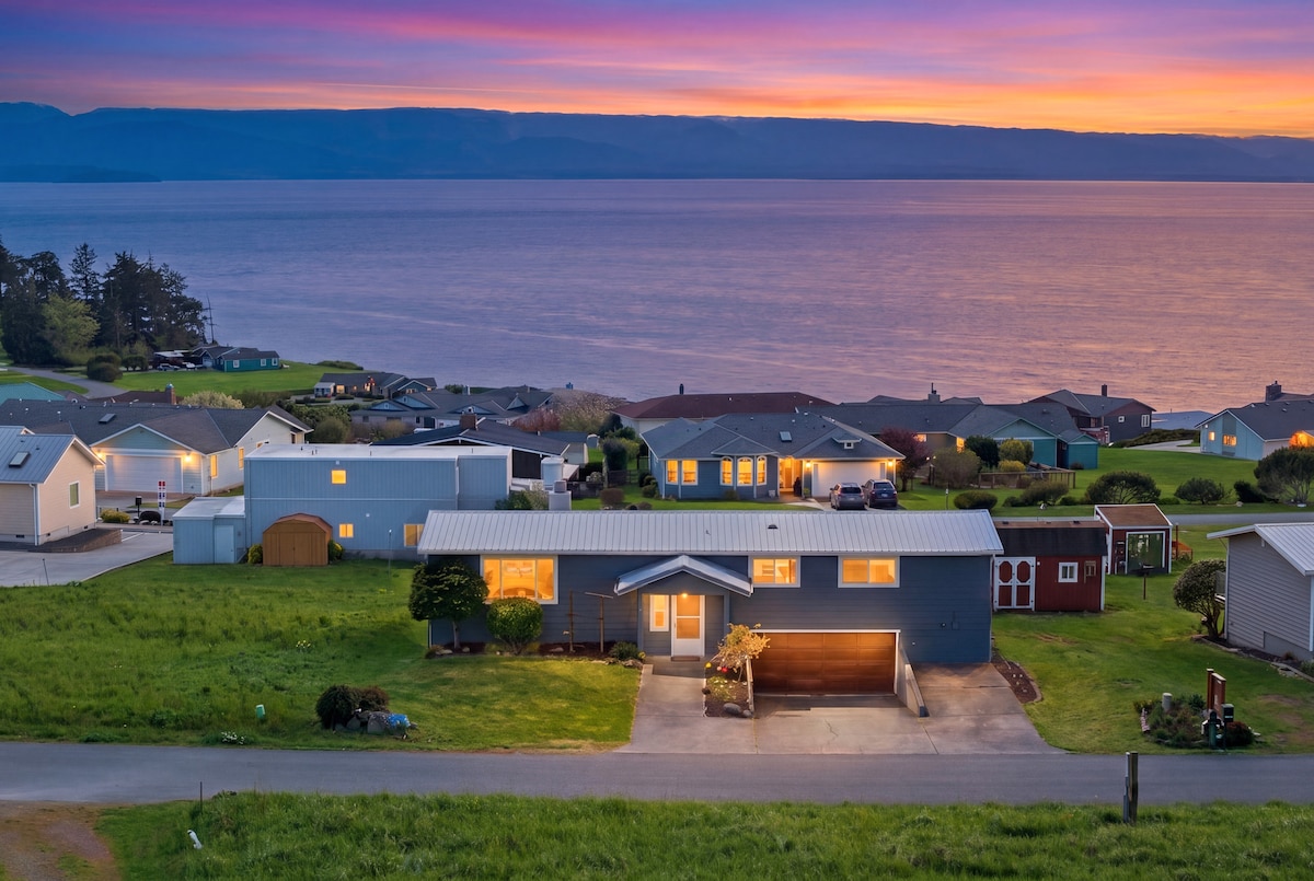 Impresionantes vistas del estrecho de Juan de Fuca y Victoria te saludan cada gloriosa mañana o mientras te sientas y observas cómo los cruceros comparten las impresionantes puestas de sol. Relájate y disfruta de las espectaculares vistas desde esta nueva casa de 3 dormitorios y 3 baños en el acantilado de Port Angeles, que tiene capacidad para 6 personas y puede alojar hasta 8. Todas las comodidades modernas incluidas (5 televisores, streaming, cocina de gas, barbacoa, chimenea). Ubicación céntrica: el centro de Port Angeles y los sitios del Parque Nacional Olímpico están a poca distancia en coche.