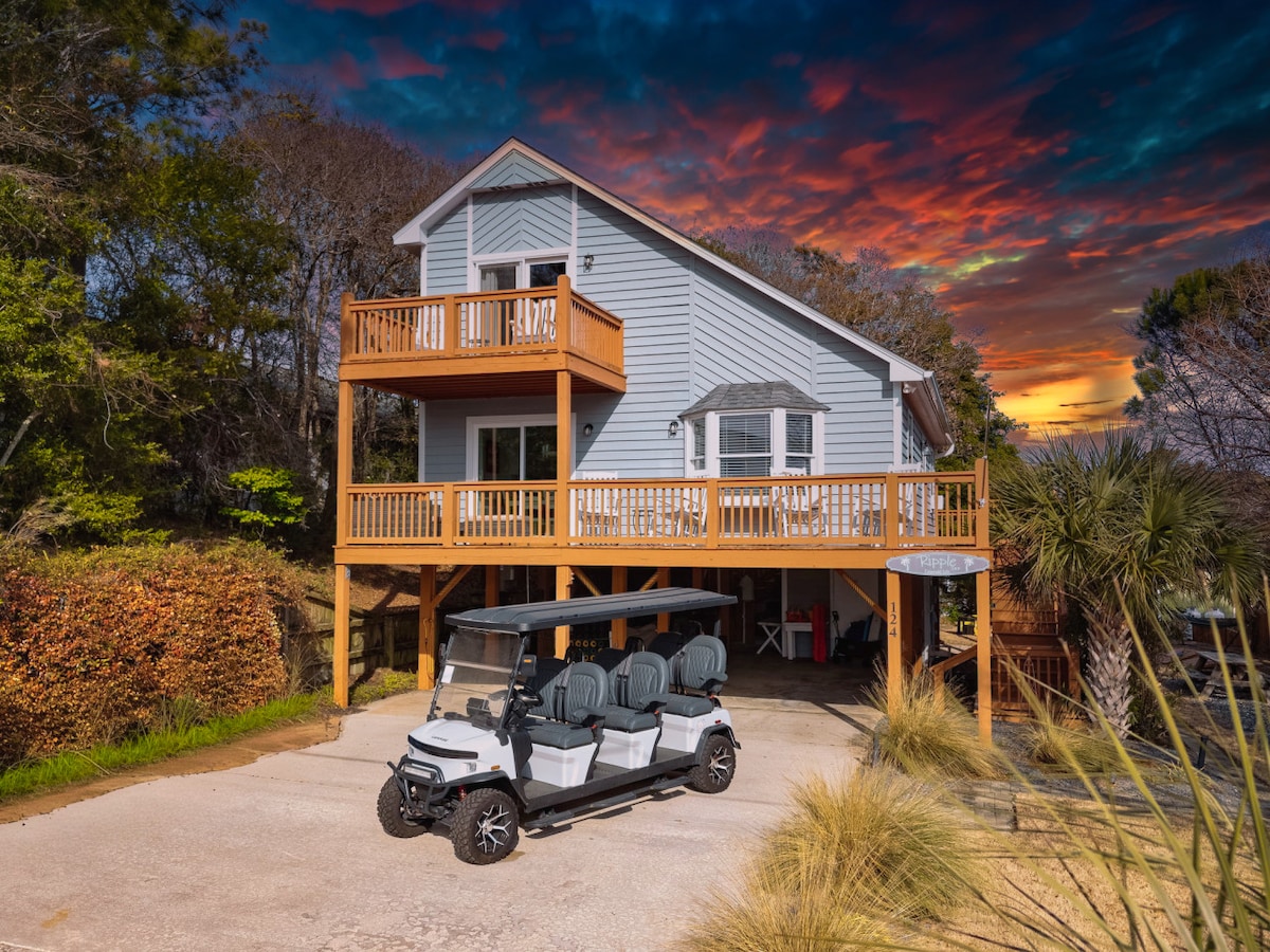 3bd, 2,5 baños. INCREÍBLES vistas de la costa. ¡Piscina comunitaria (abierta AHORA) y el océano está al otro lado de la calle! Cargador para vehículos eléctricos de nivel 2 incluido. Golden Tee arcade, futbolín 3 en 1, hockey, billar arriba. Gran 4 en raya en la cochera. Muelle donde puedes pescar, kayak (incluido), tabla de paddle (incluida). Tabla de surf de espuma de 9 pies para montar olas. Planta abierta arriba con cocina actualizada que tiene granito y todas las necesidades. Cama tamaño king, queen y literas con 4 televisores de pantalla plana.