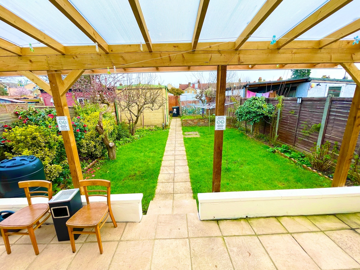 Encantador refugio de 1 dormitorio perfecto para parejas, viajeros solitarios o una escapada tranquila. Luminoso, limpio y lleno de luz natural con un encantador jardín privado para relajarse. A solo 5 minutos del centro de la ciudad, las tiendas y la estación de tren con acceso directo a Liverpool Street en 25 minutos, más rápido que la mayoría de las rutas de metro. Barrio tranquilo, ideal para lunas de miel o escapadas relajantes a la ciudad. Una estancia acogedora y cómoda a las afueras del corazón de Londres.