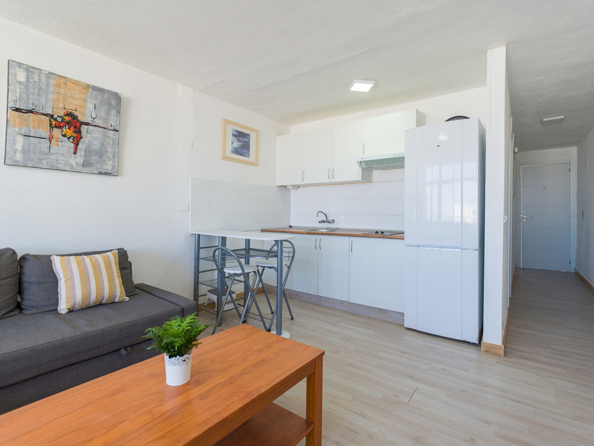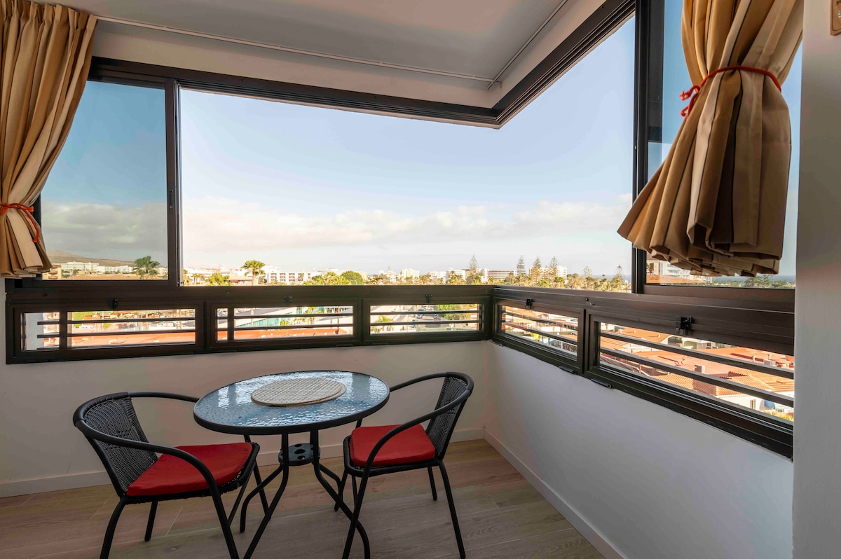 Spacious top-floor apartment on the 8th floor with extra light, privacy and open views – ideal for up to 3 guests. Perfect for longer stays, remote work or relaxed holidays in Maspalomas. Two single beds (convertible to double), sofa bed and workspace. Fully equipped kitchen, Smart TV, Netflix, fast WiFi. Washing machine included. Quiet yet well connected, just a short walk from Yumbo Centre, restaurants, supermarkets and transport.
