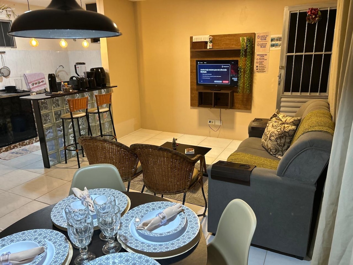 Trae a tu familia y amigos a esta hermosa y acogedora casa de dos pisos con una zona de ocio privada, situada en la playa de Enseada dos Corais. Todas las habitaciones tienen aire acondicionado. Obtén un 10 % de descuento para estadías de 3 noches, un 15 % de descuento para estadías de 4 noches, un 18 % de descuento para estadías de 5 noches y un 20 % de descuento para 6 noches.