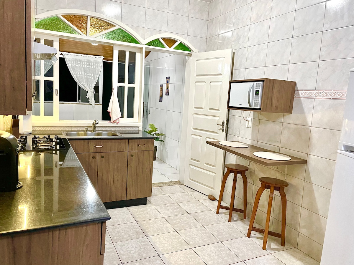 Amplia y bien equipada casa de estilo colonial en un tranquilo barrio de Conselheiro Lafaiete, a solo 10 minutos en coche del centro de la ciudad. Ideal para viajes de negocios, estancias de placer o grupos. Cuenta con un garaje privado, un jardín cerrado y, para las empresas, almacenes adicionales y espacios cerrados disponibles para alquilar.