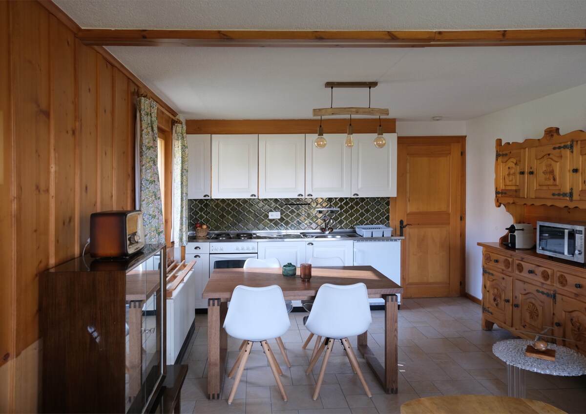 Our 3-BR apartment is next to Cordee des Alpes hotel. 8' walk to Place Centrale and 4' walk to supermarket (Coop & Migros). You’ll be close to Medran gondolas, restaurants, shops & nightlife. There is a free bus stop at 130m. You’ll love the central but silent location, equipped kitchen, and sunny garden. There is 1x free indoor parking spot. Our apartment suits friends, couples, and families with kids. We have 7 beds, however we allow 6 people maximum to ensure comfort for everyone.
