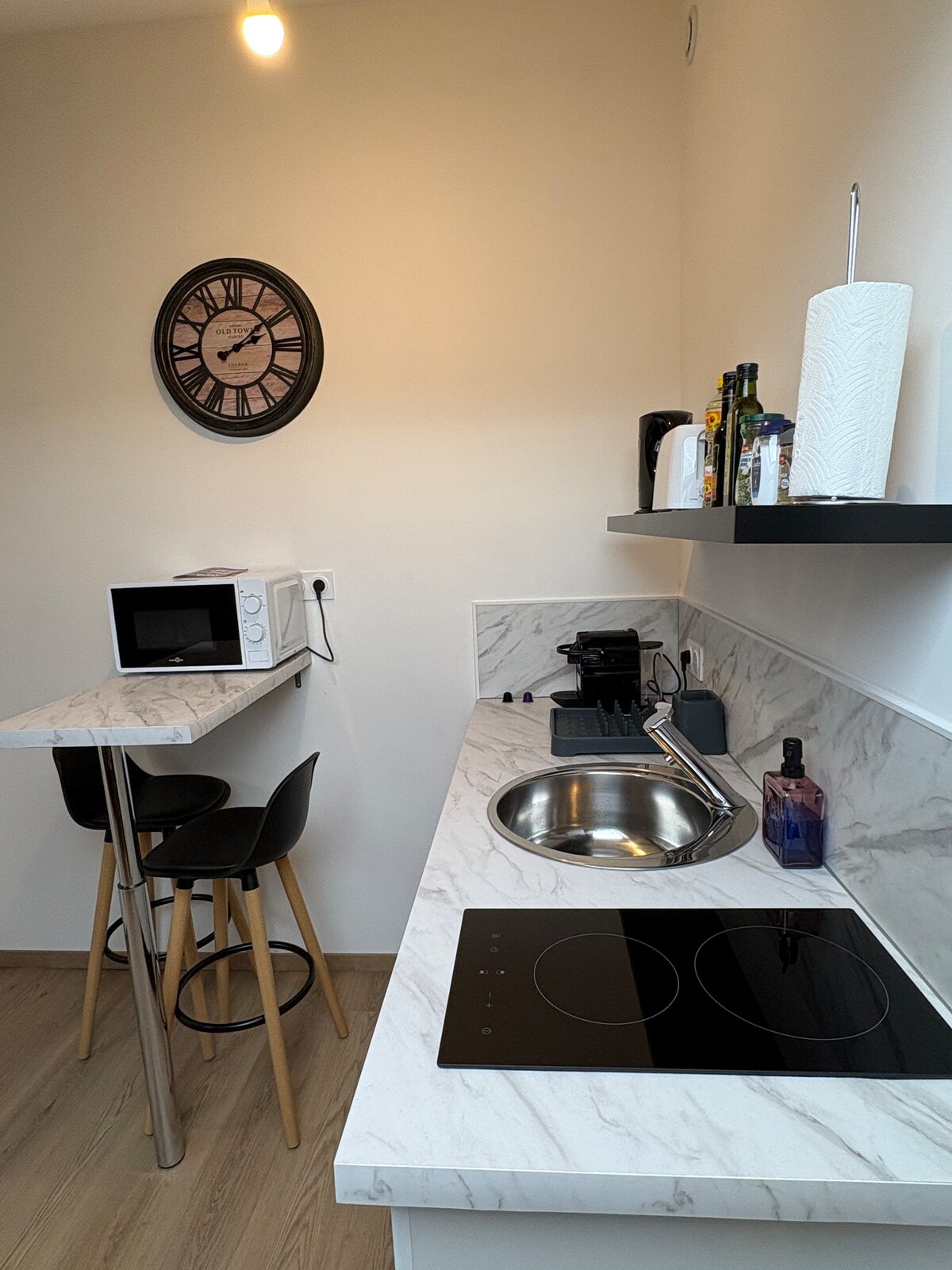 Ideal para estancias de relax o de trabajo, este luminoso y totalmente equipado apartamento dispone de una acogedora sala de estar con sofá cama, TV conectada y zona de trabajo equipada (escritorio, silla ergonómica, conexión de fibra de alta velocidad). La sala de estar está abierta a la cocina totalmente equipada. Por la noche, una habitación doble con colchón tamaño Queen. Baño con bañera. Situado en una zona tranquila y segura, a pocos minutos a pie del centro de la ciudad, la estación de tren y las tiendas y restaurantes.